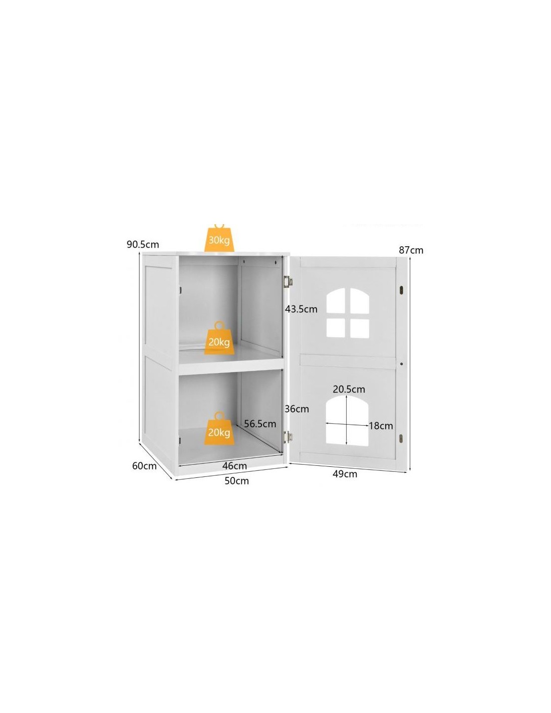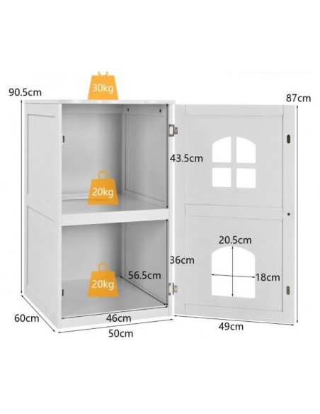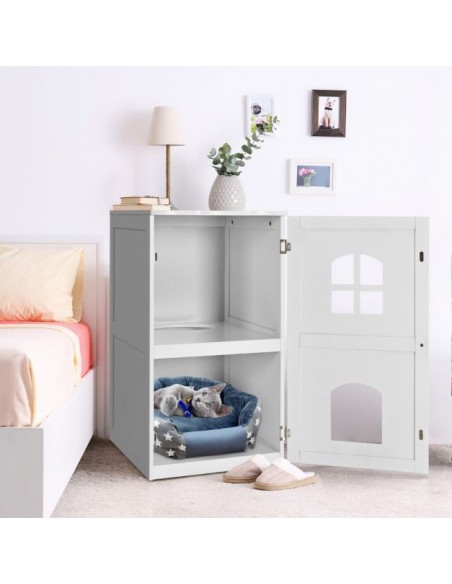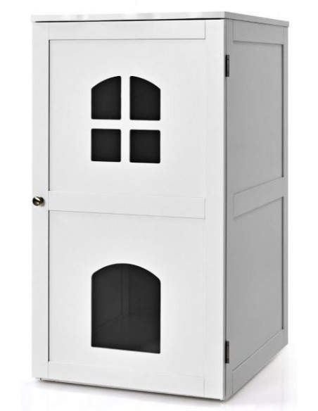 Kattehus udført i et design af træ. Kattehuset måler 90,5 cm i højden og 50 x 60 cm i bredde og dybde. Vi anbefaler ikke at møblet står udendørs når der er fugt eller regnvejr.