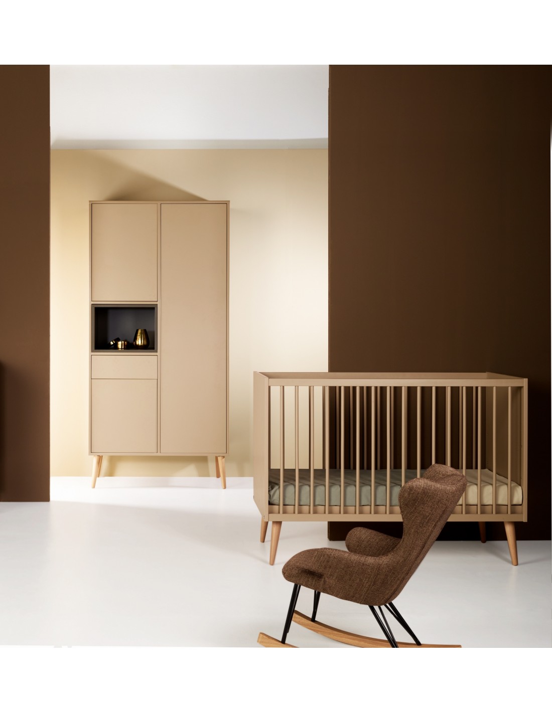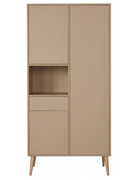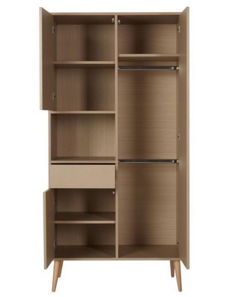 COCOON Klædeskab til børneværelset fra Belgiske Quax, udført i et moderne design og fremstillet i lækre materialer. Klædeskabet måler 196,5 x 96 cm i højde og bredde. Skabet er indrettet med hylder og bøjlestænger, der kan opsættes efter ønske. Hertil 1 skuffe med push-funktion. Inddelingen kan også opsættes efter voksenbehov.