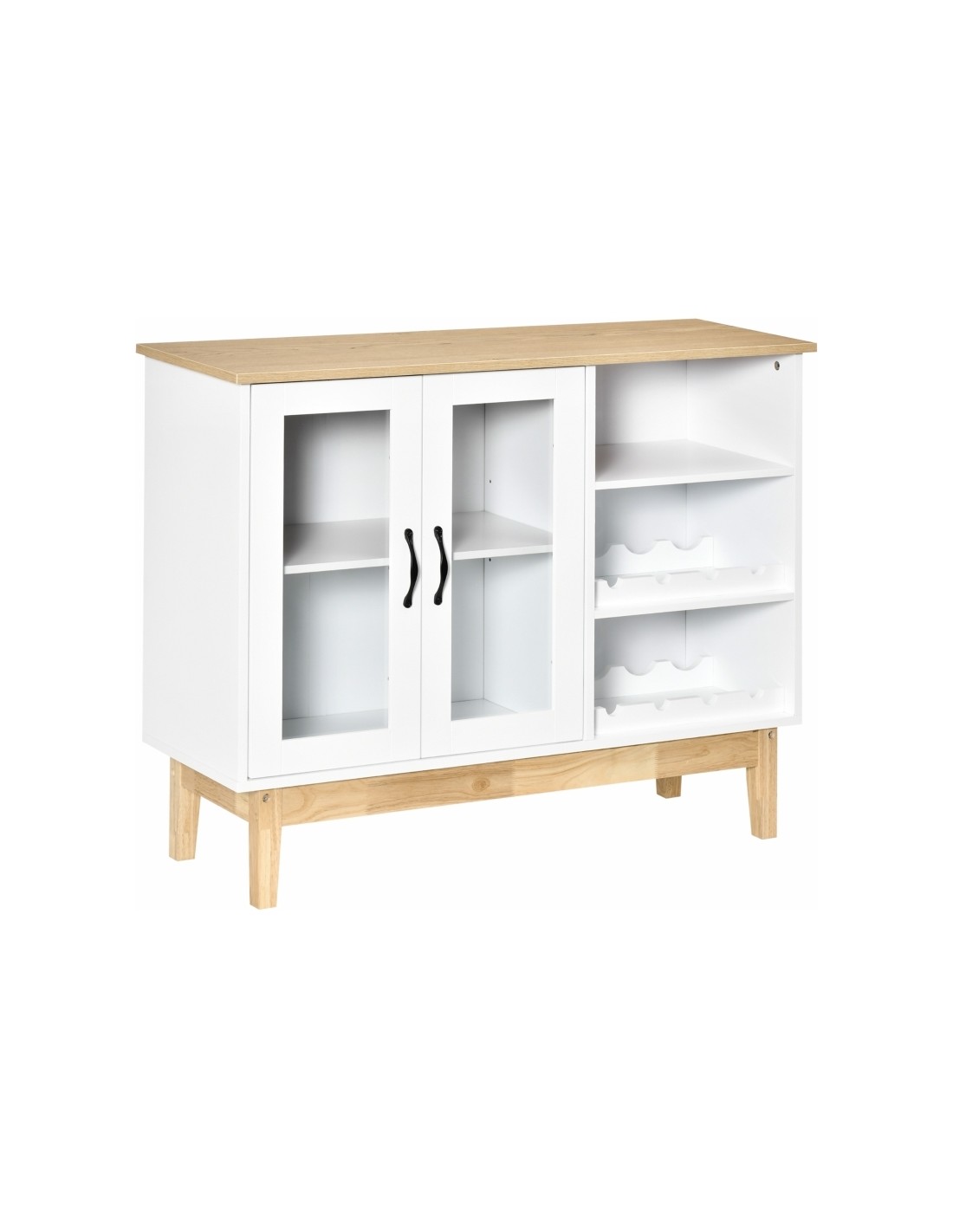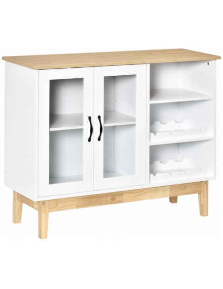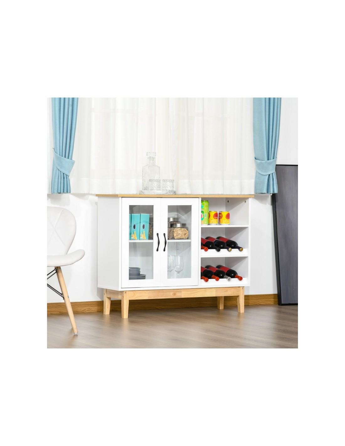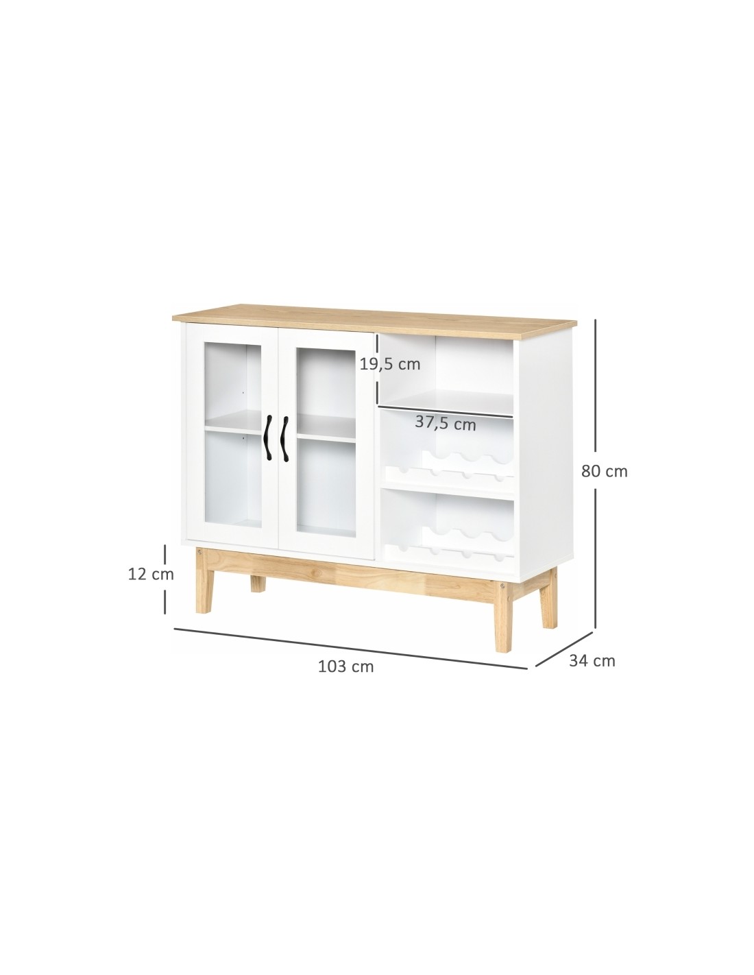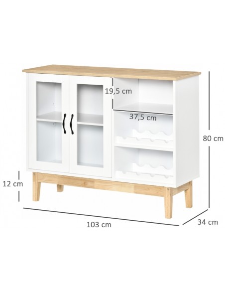 Vinskab til køkken i MDF, møbelplade og træ H80 cm - Hvid/Natur