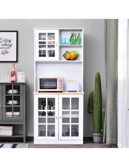 Køkkenskab i MDF og glas H183 x B80 cm - Hvid/Natur