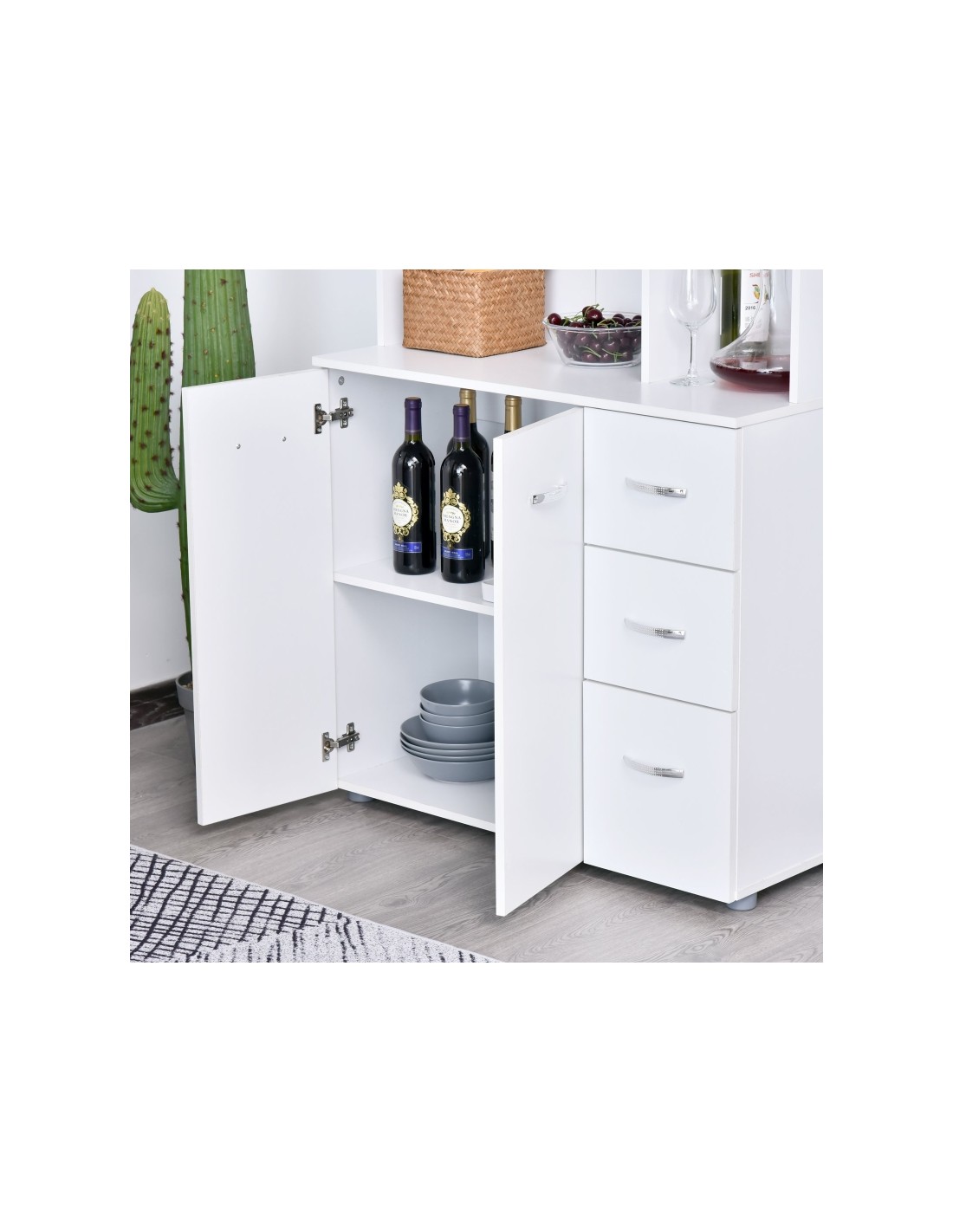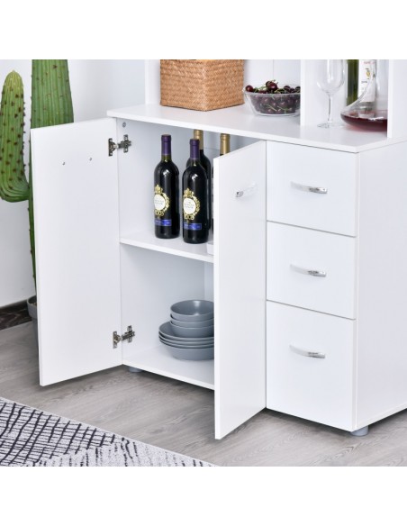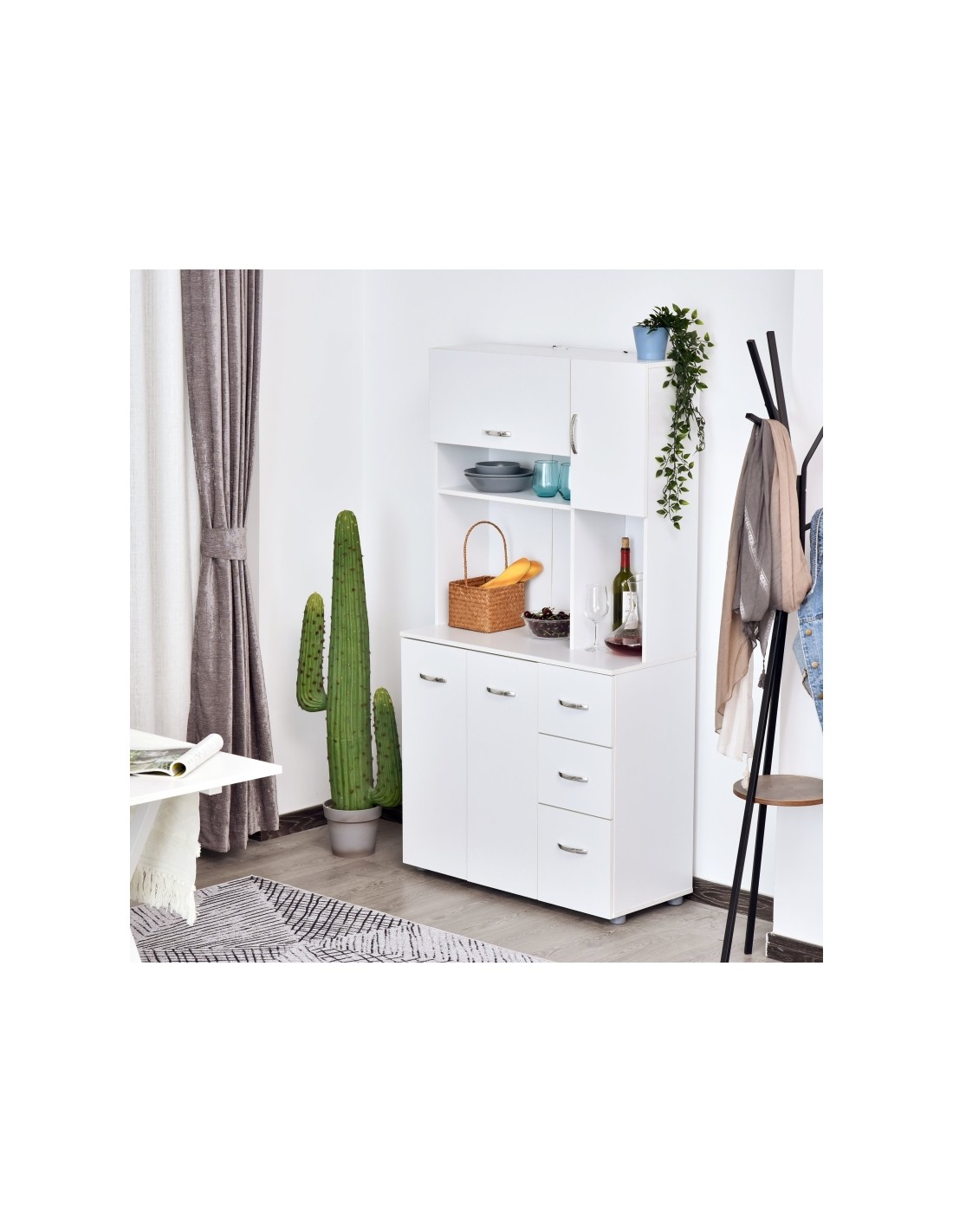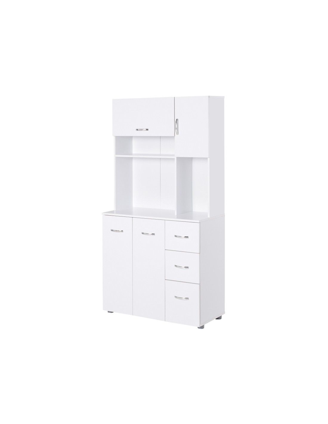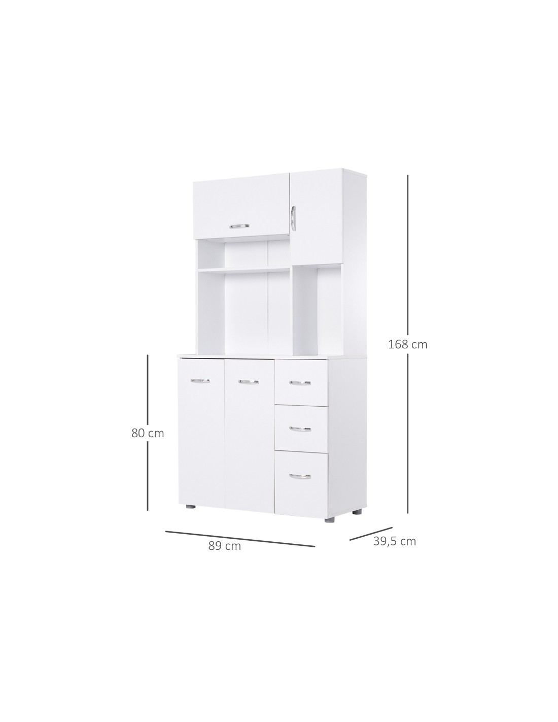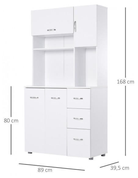 Køkkenskab udført i et design af møbelplade. Skabet måler 89 x 39,5 cm i bredde og dybde og 168 cm i højden. Skabet indeholder 3 åbne hylderum, 3 skuffer samt 4 skabe, hvoraf de 3 er med justerbar hylde.