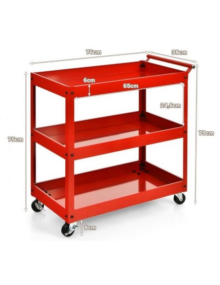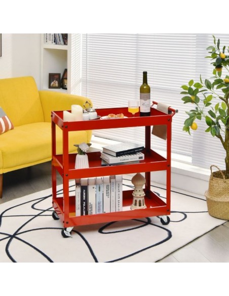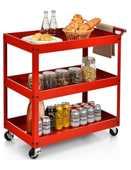 Serveringsvogn i stål 76 x 38 cm - Rød