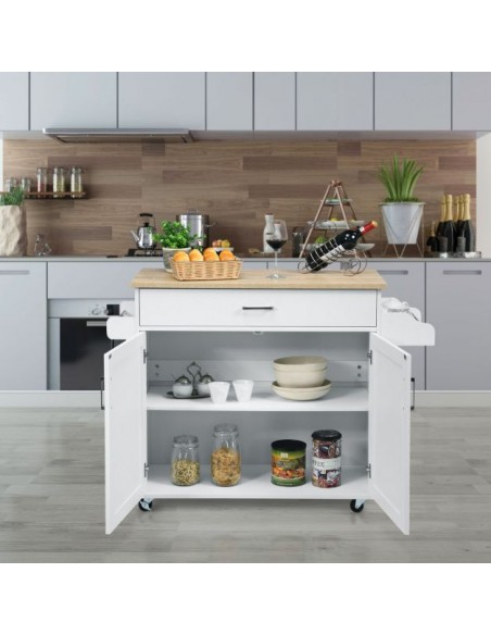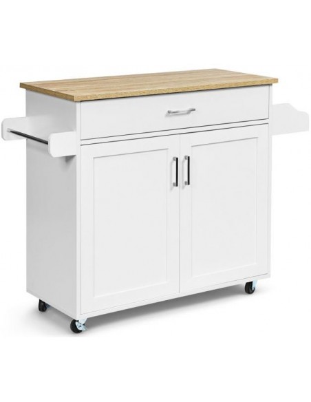 Serveringsvogn i mdf og træ 116 x 40 cm - Hvid/Natur
