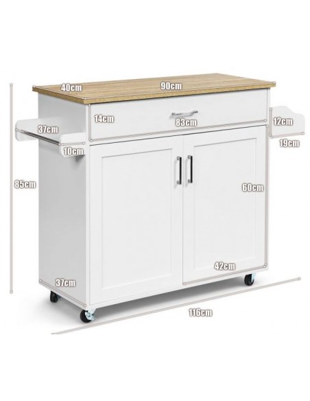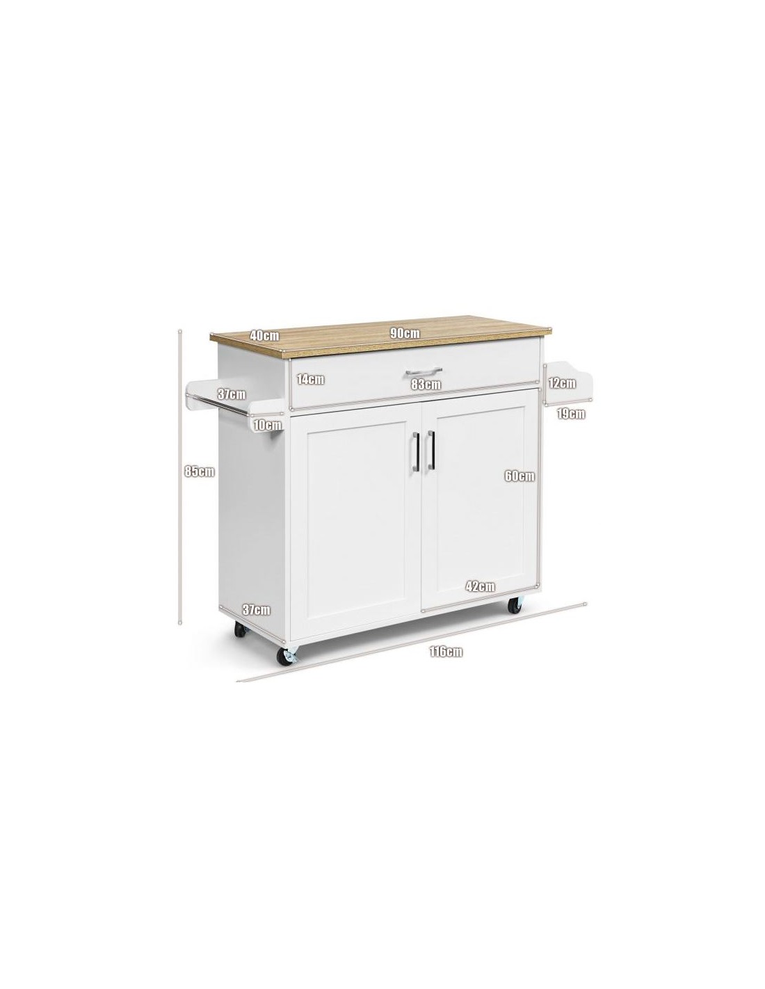 Serveringsvogn udført i et design af mdf og træ. Serveringsvognen måler 85 cm i højden og 116 x 40 cm i bredde og dybde. Vognen indeholder 1 skuffe samt 1 dobbeltskab med højdejusterbar hylde.