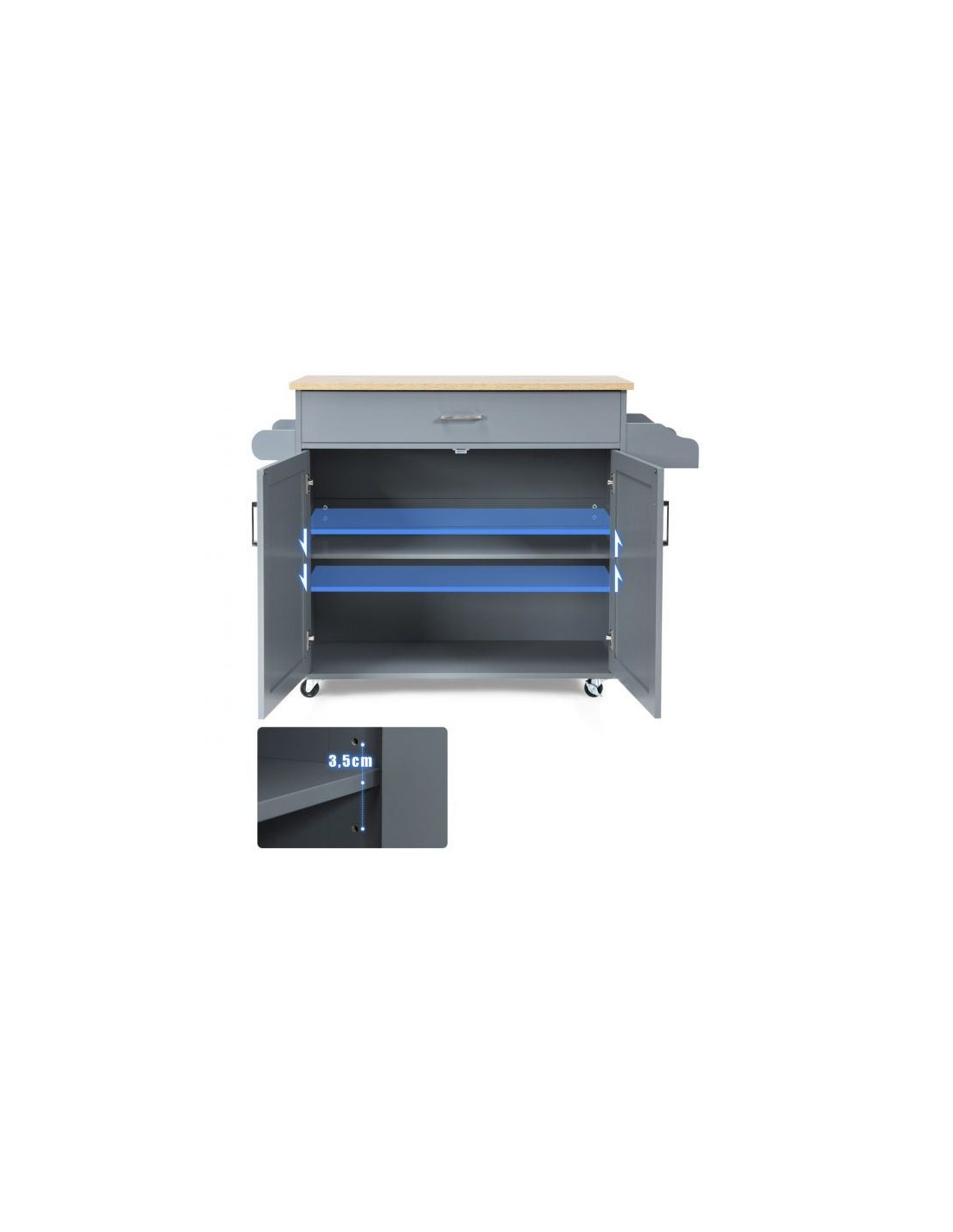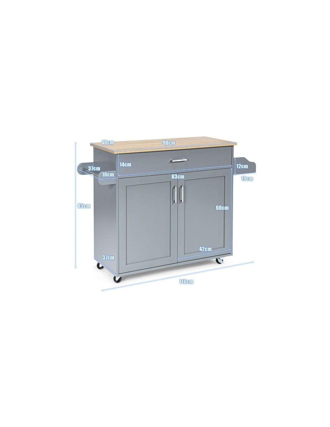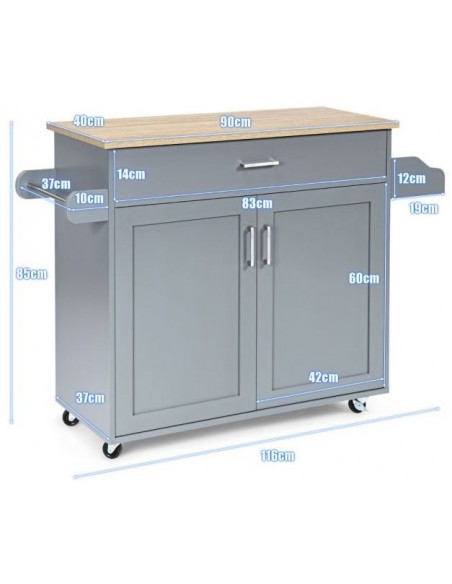 Serveringsvogn udført i et design af mdf og træ. Serveringsvognen måler 85 cm i højden og 116 x 40 cm i bredde og dybde. Vognen indeholder 1 skuffe samt 1 dobbeltskab med højdejusterbar hylde.