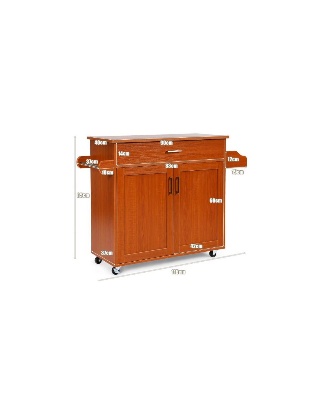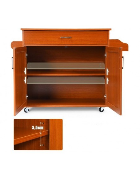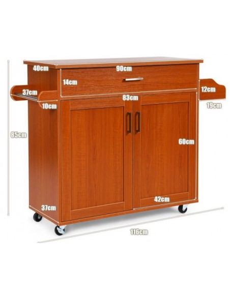 Serveringsvogn udført i et design af mdf og træ. Serveringsvognen måler 85 cm i højden og 116 x 40 cm i bredde og dybde. Vognen indeholder 1 skuffe samt 1 dobbeltskab med højdejusterbar hylde.