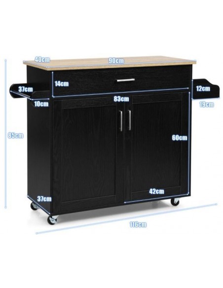 Serveringsvogn udført i et design af mdf og træ. Serveringsvognen måler 85 cm i højden og 116 x 40 cm i bredde og dybde. Vognen indeholder 1 skuffe samt 1 dobbeltskab med højdejusterbar hylde.
