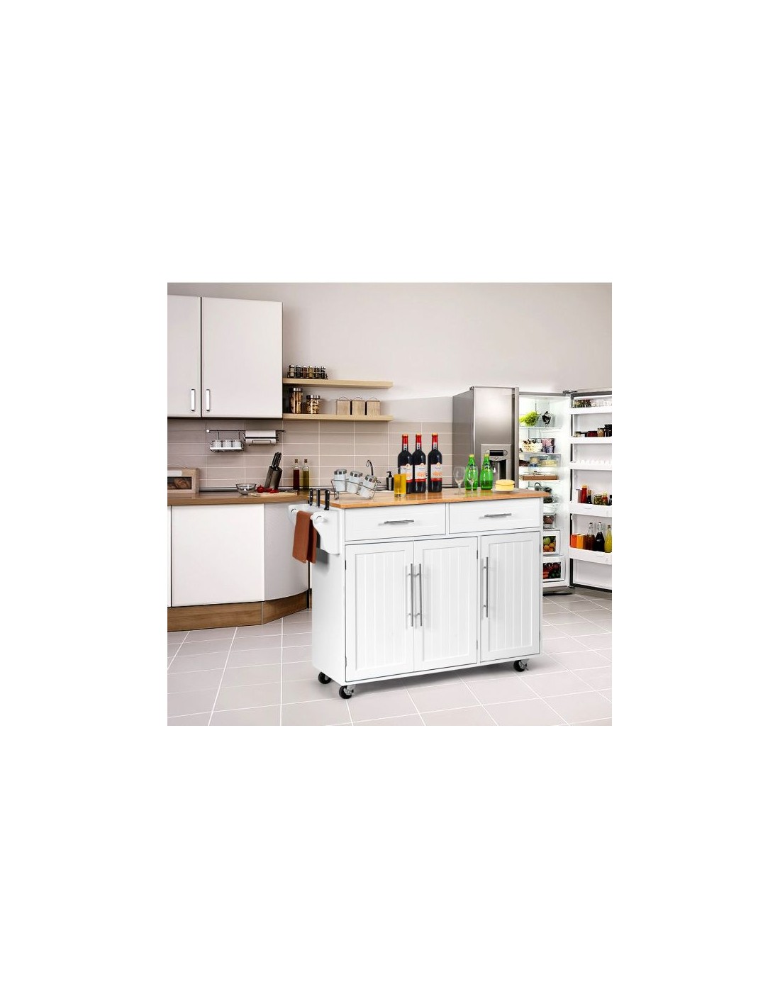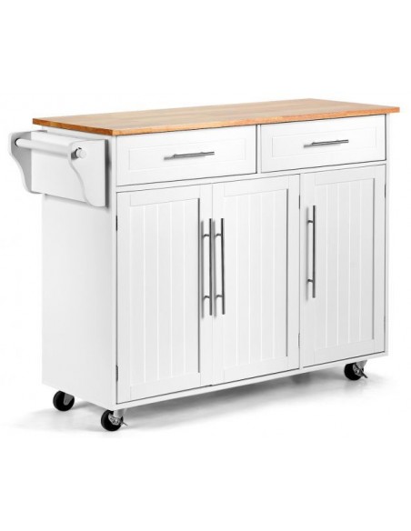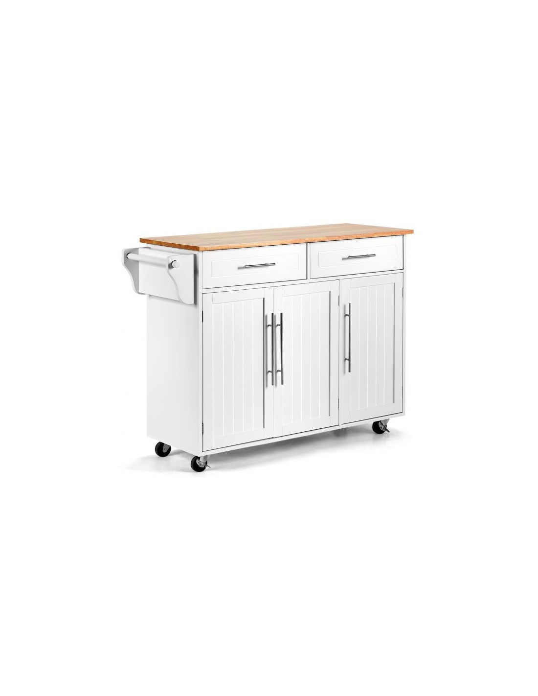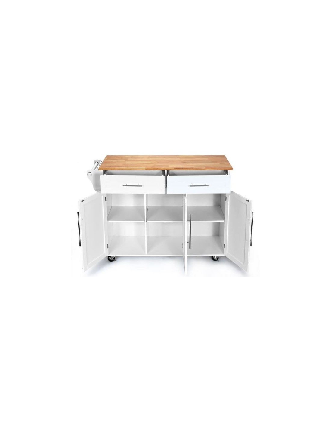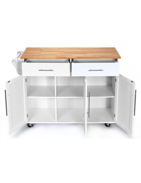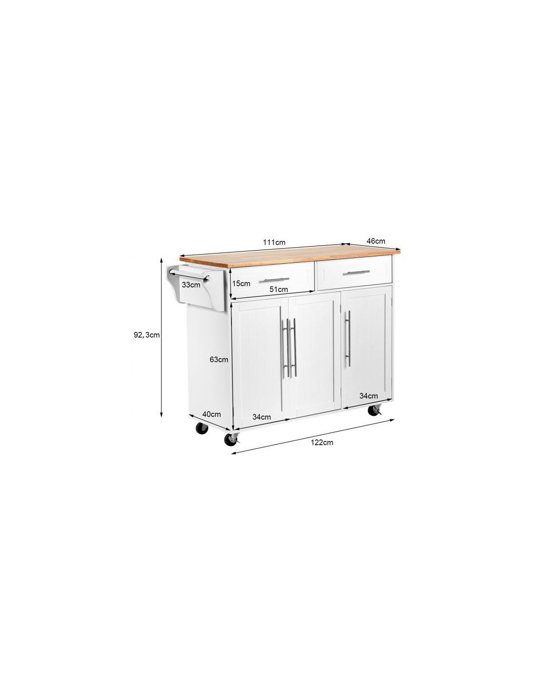 Køkkenskab eller serveringsvogn i mdf og træ 111 x 46 cm - Hvid/Natur