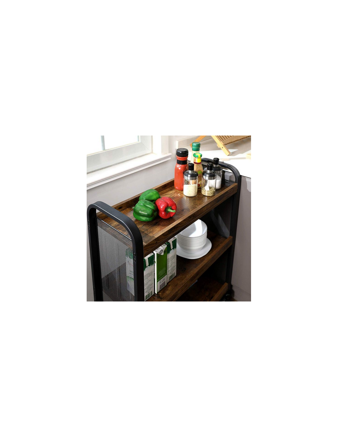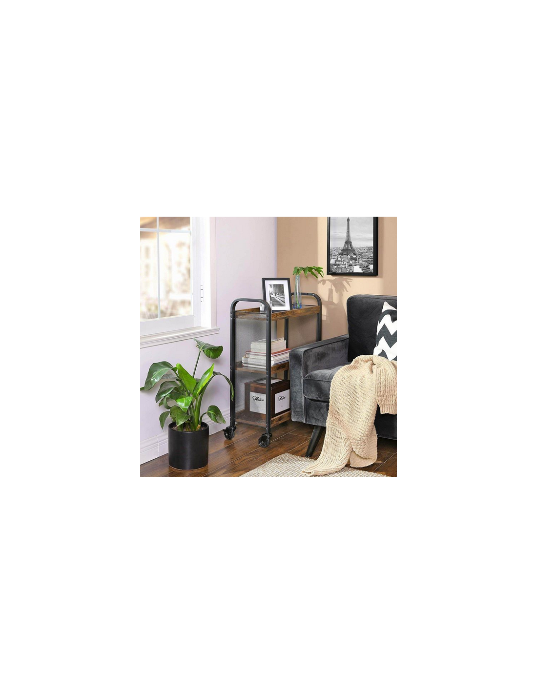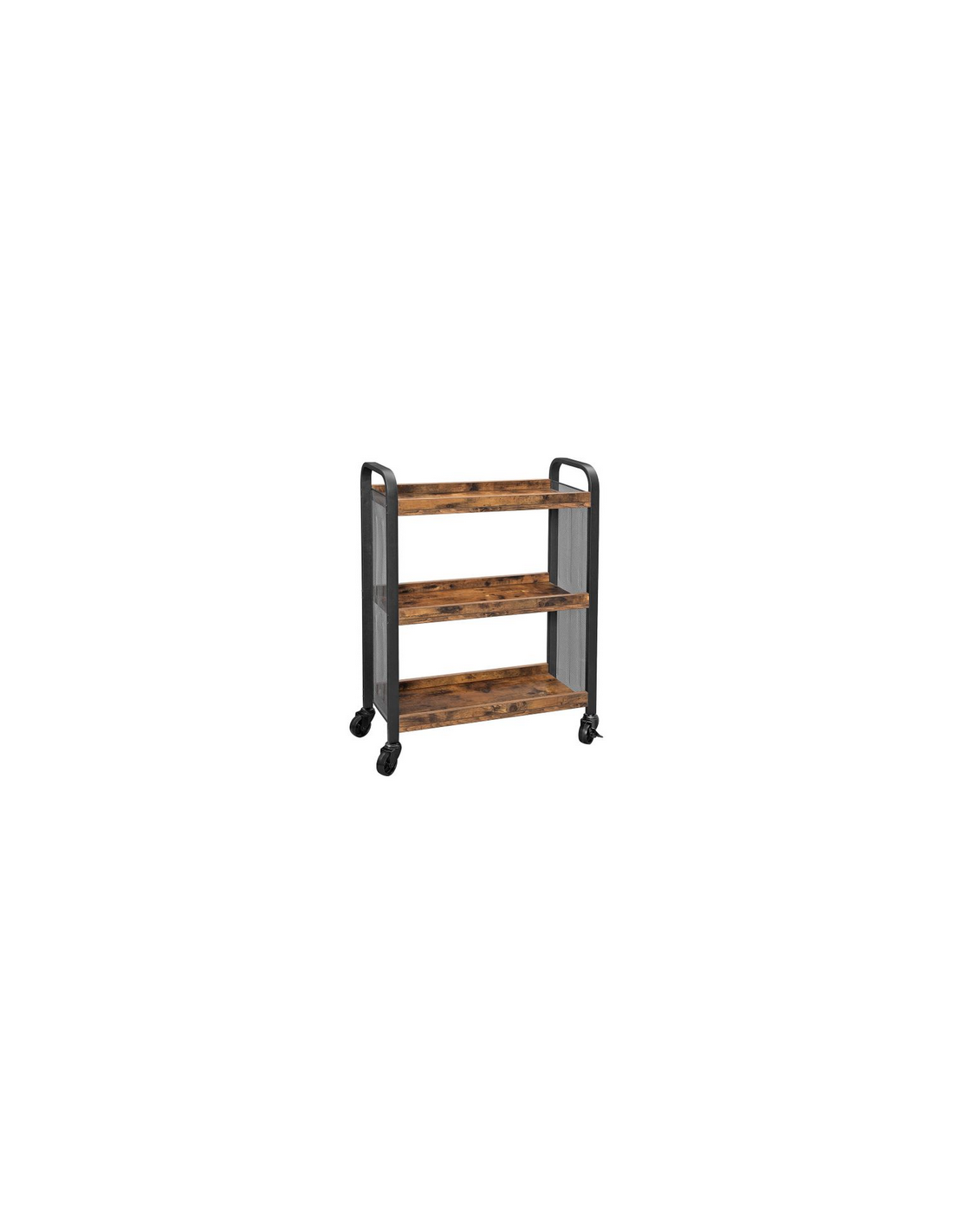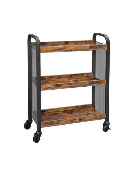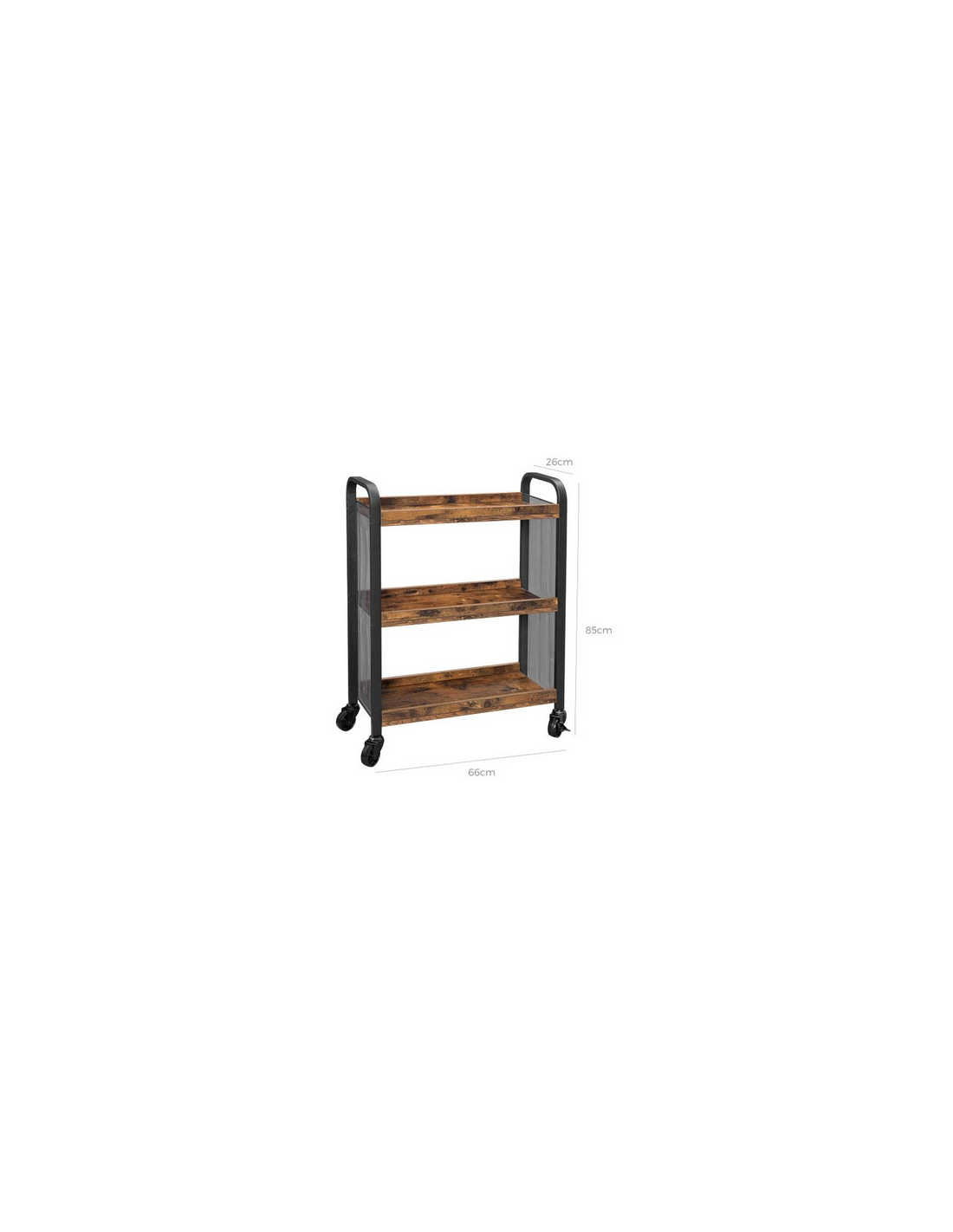 Rullevogn udført i et design af sortlakeret metal og brun møbelplade. Vognen måler 85 cm i højden og 66 x 26 cm i bredde og dybde.