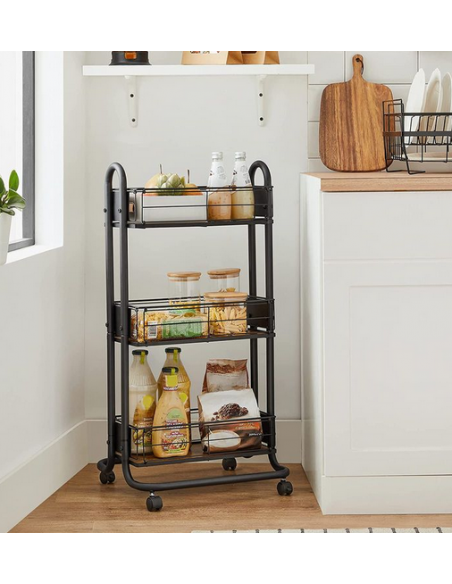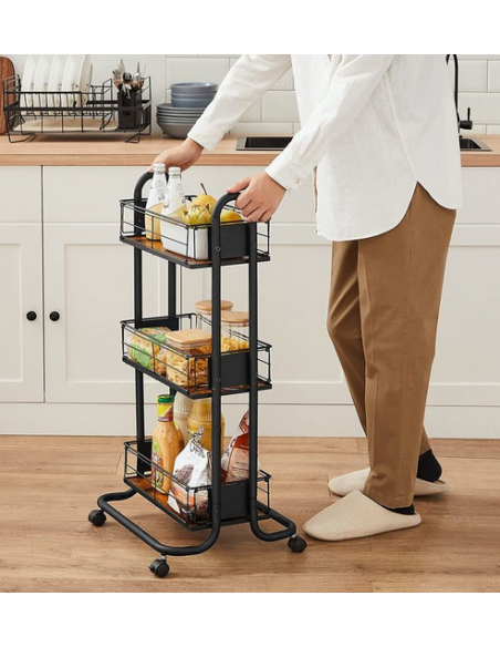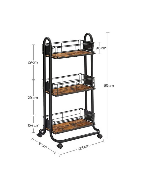 Rullevogn i metal og møbelplade H83 x B42,5 x D35 cm - Sort/Brun