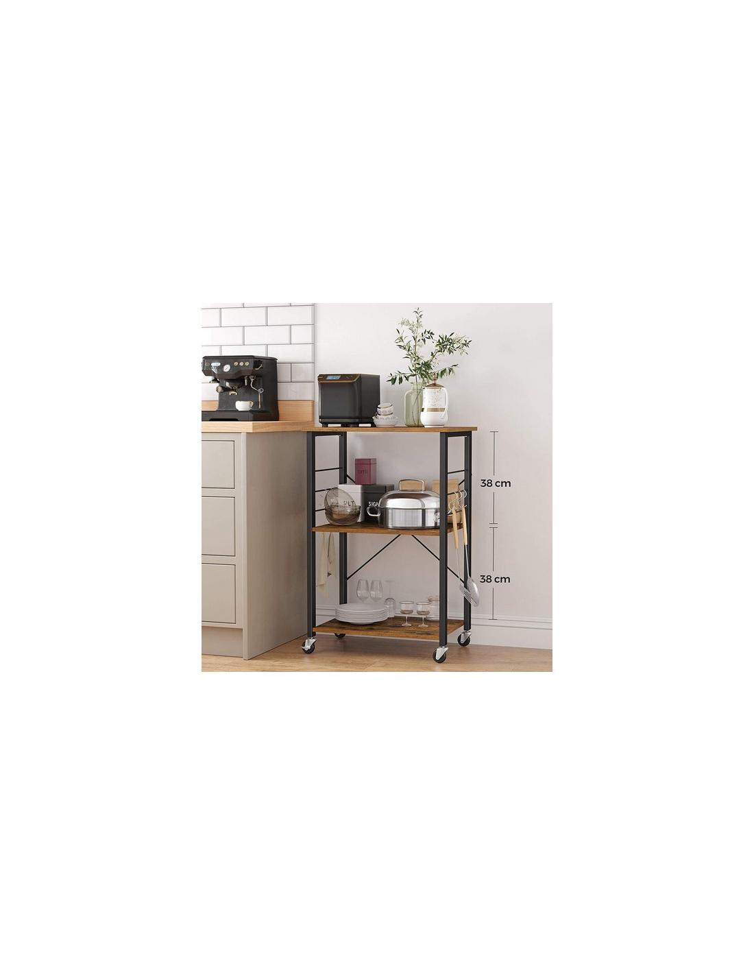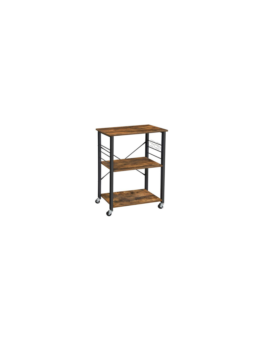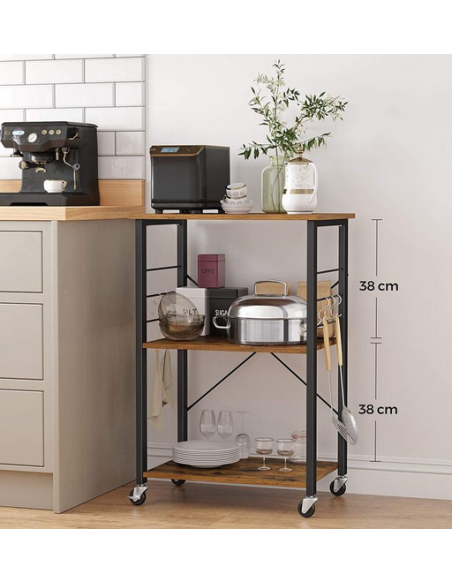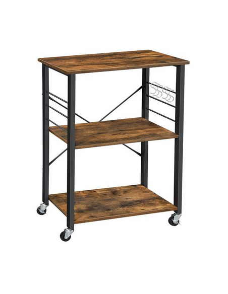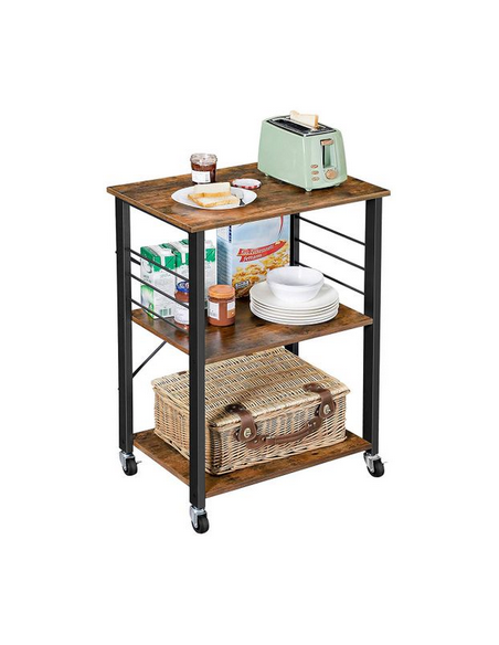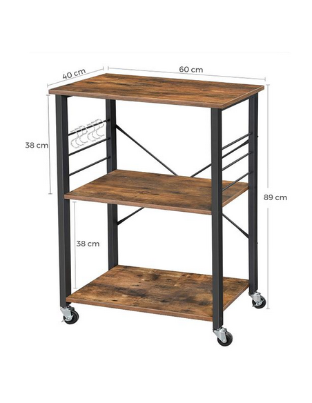 Rullevogn udført i et design af sortlakeret metal og brun møbelplade. Vognen måler 89 cm i højden og 60 x 40 cm i bredde og dybde.
