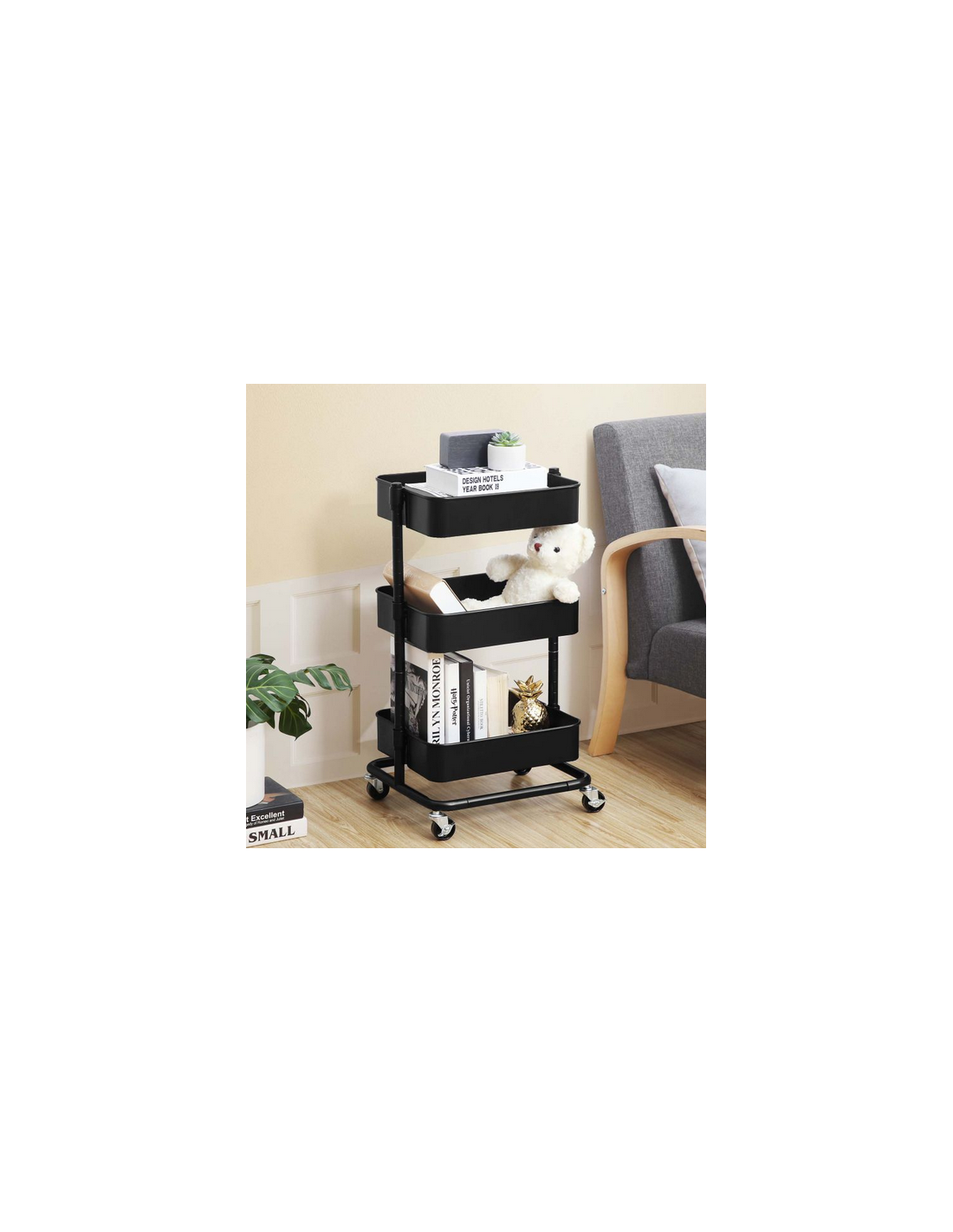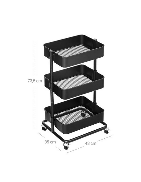 Rullevogn i metal H73,5 x B43 x D35 cm - Sort
