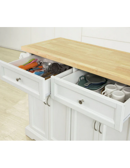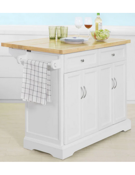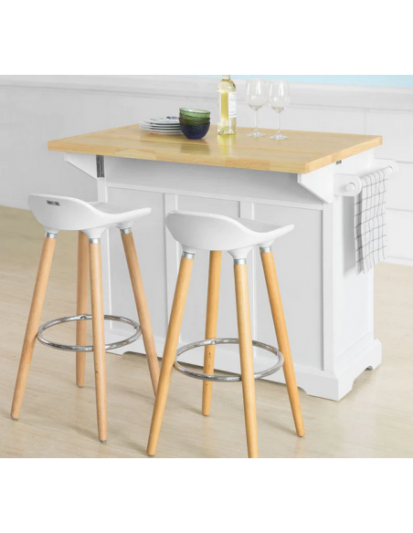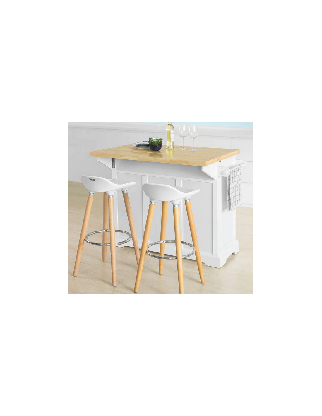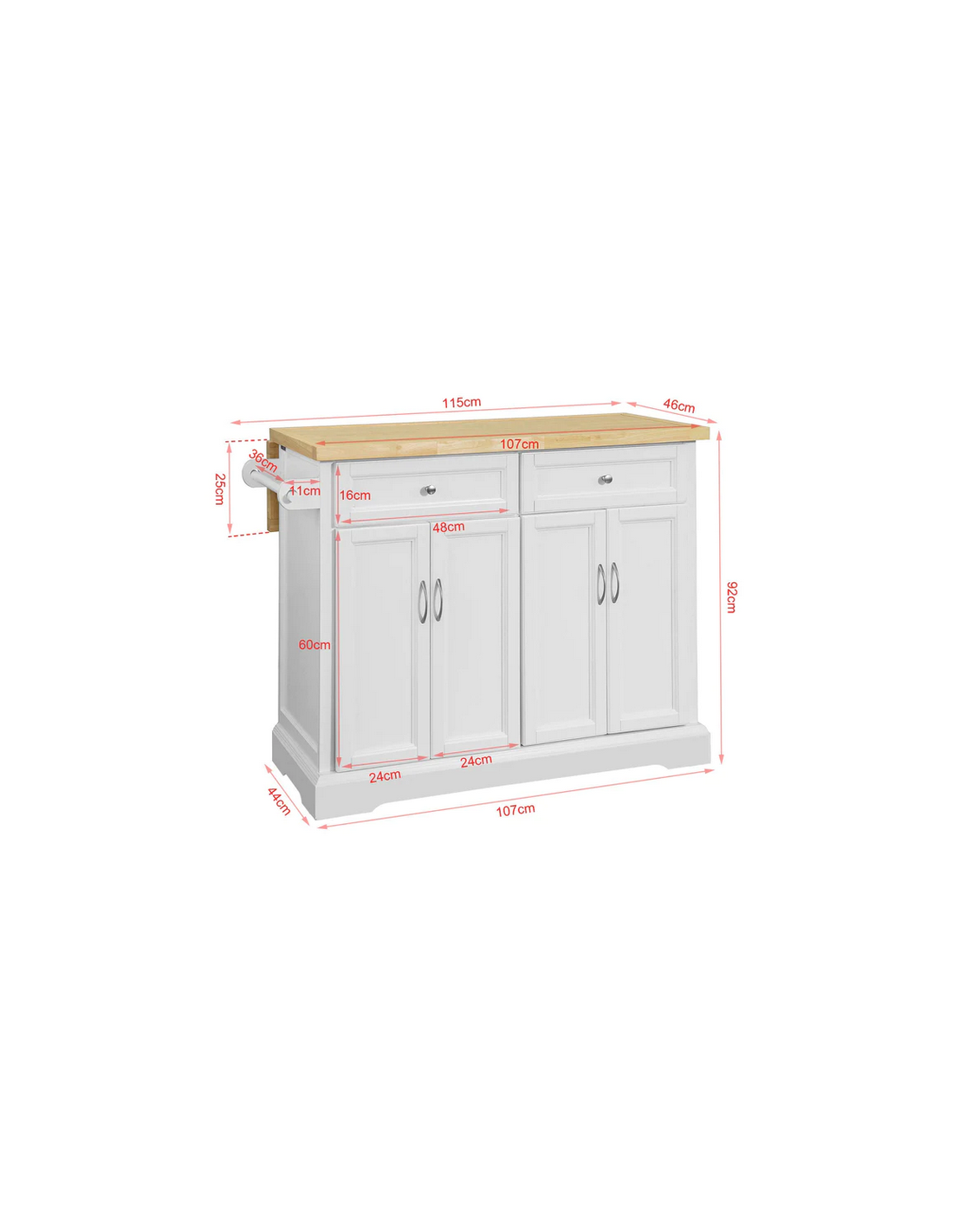 Køkkenskab eller serveringsvogn i møbelplade og finér 115 x 46 cm - Hvid/Natur