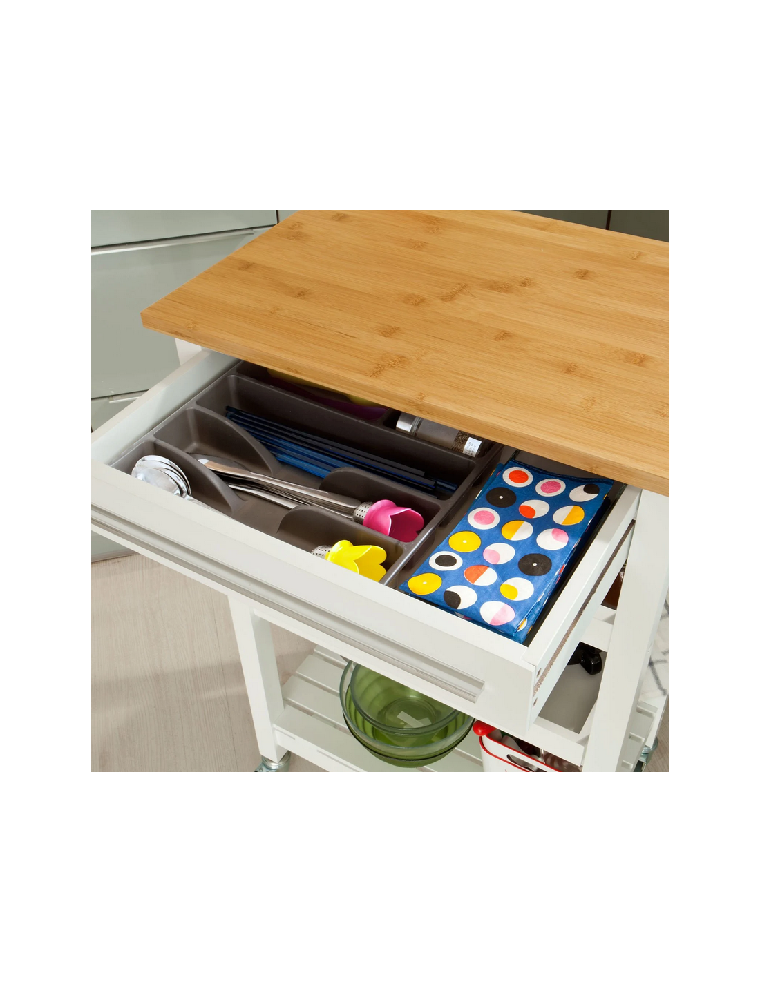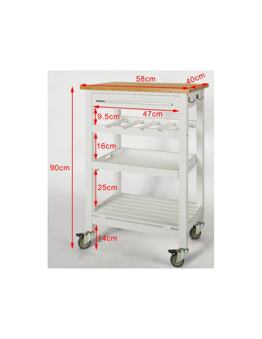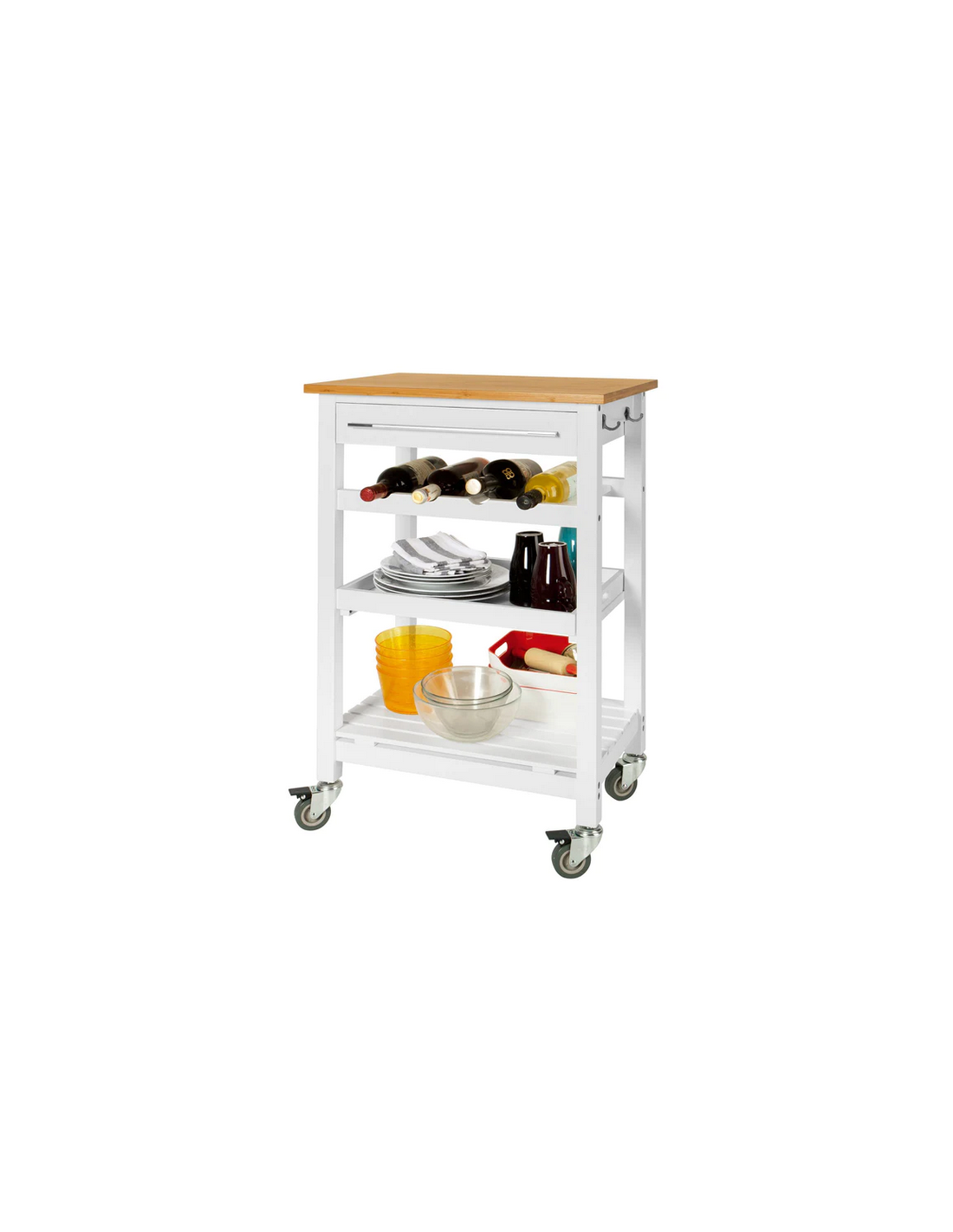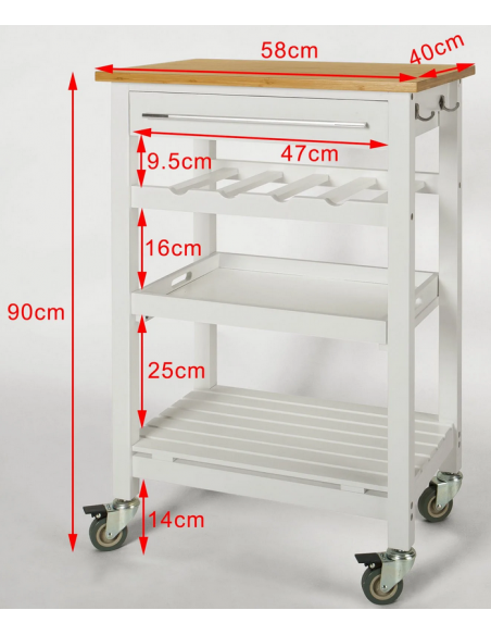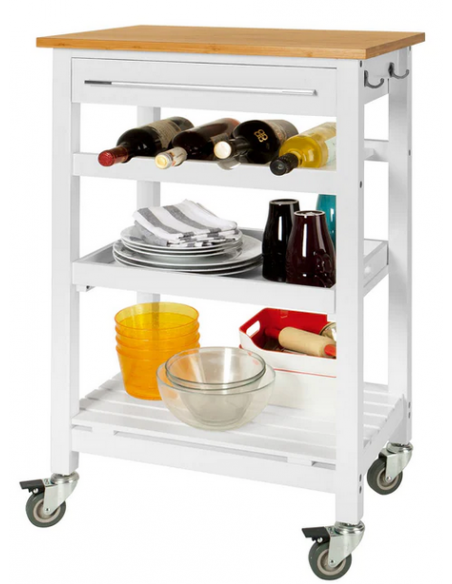 Køkkenskab eller serveringsvogn i møbelplade og finer 58 x 40 cm - Hvid/Natur