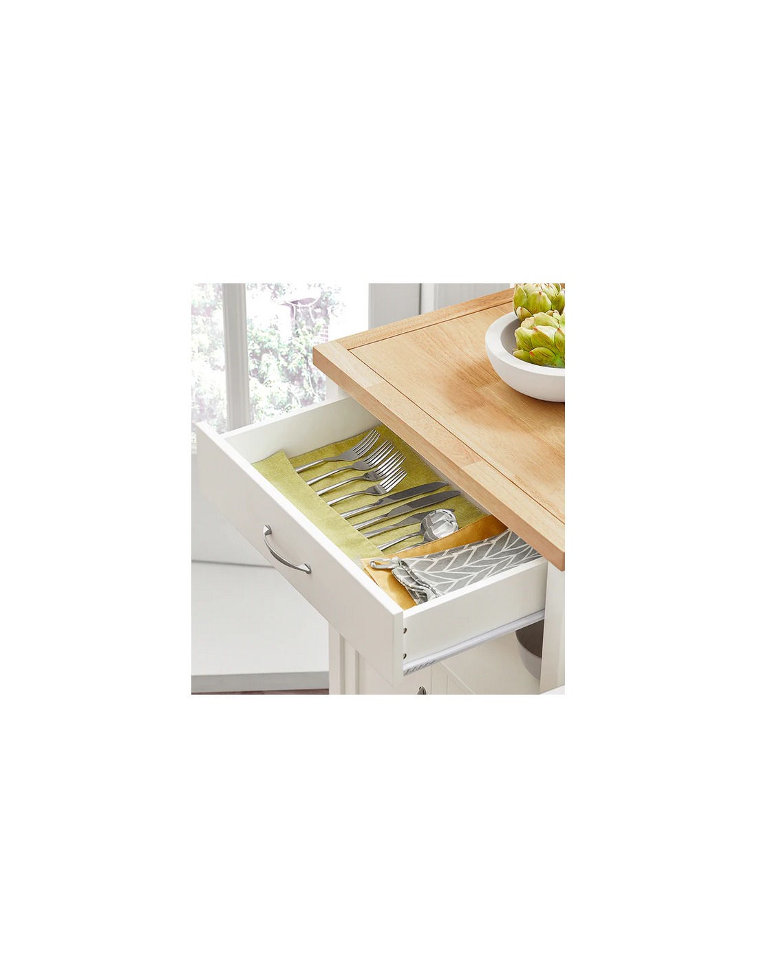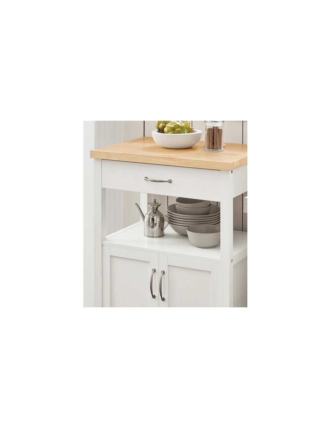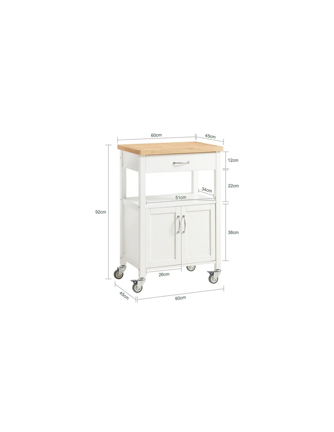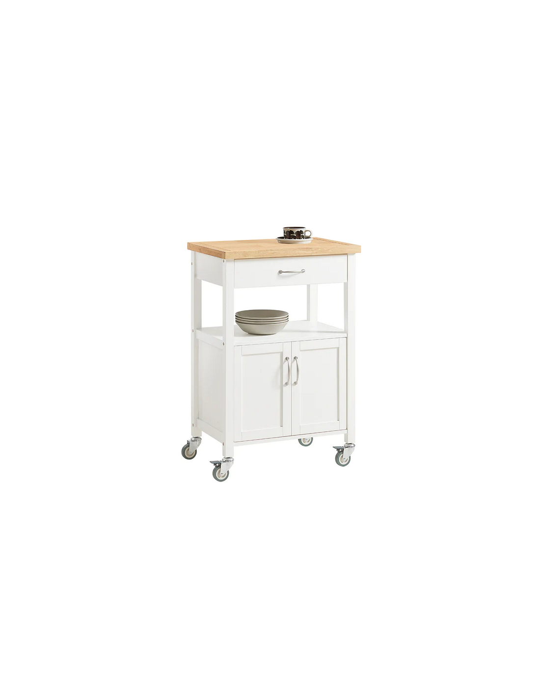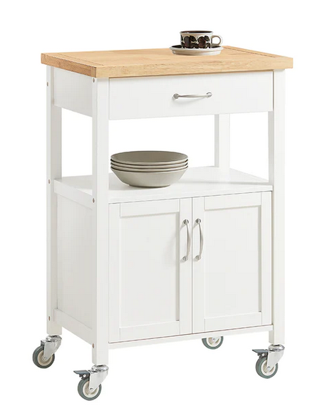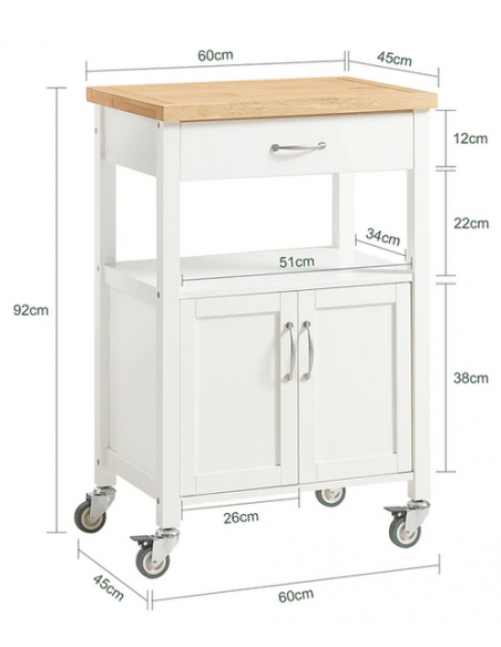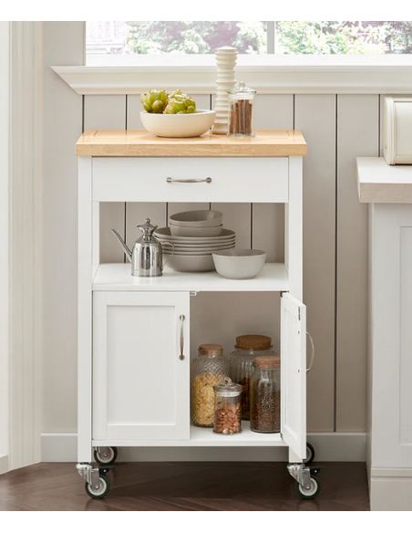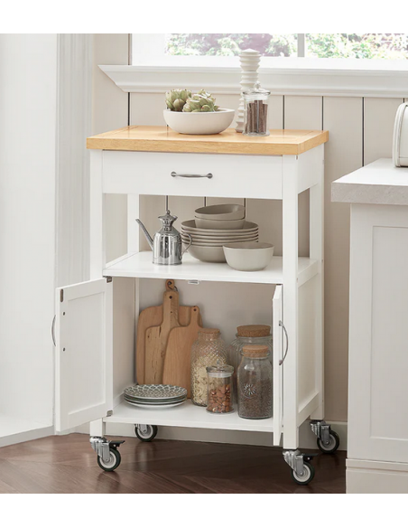 Køkkenskab eller serveringsvogn i møbelplade og finer 60 x 45 cm - Hvid/Natur