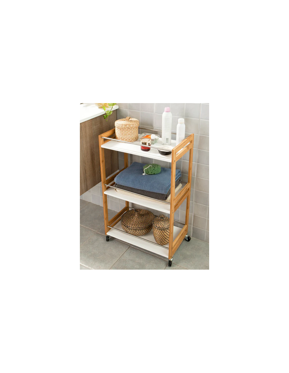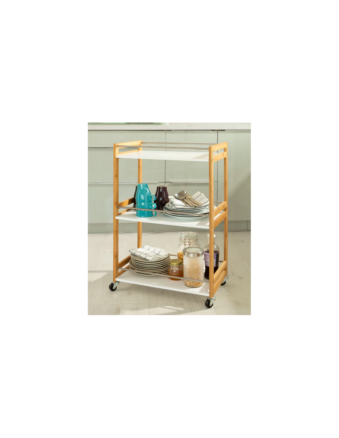Serveringsvogn i møbelplade og bambus 51 x 30 cm - Hvid/Natur
