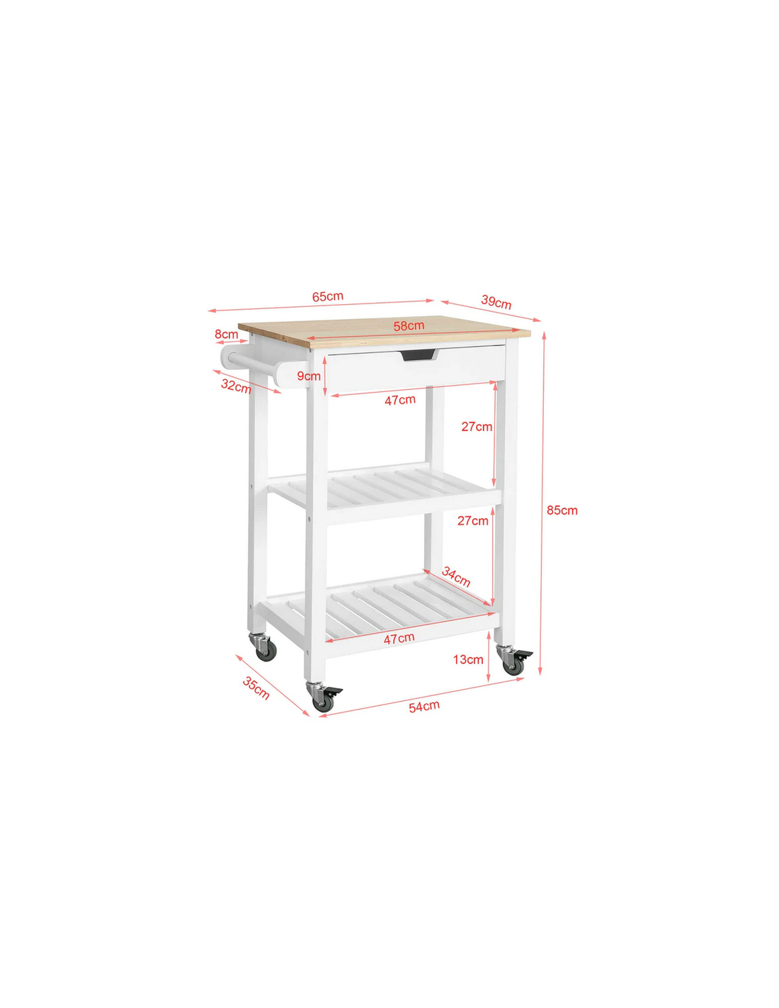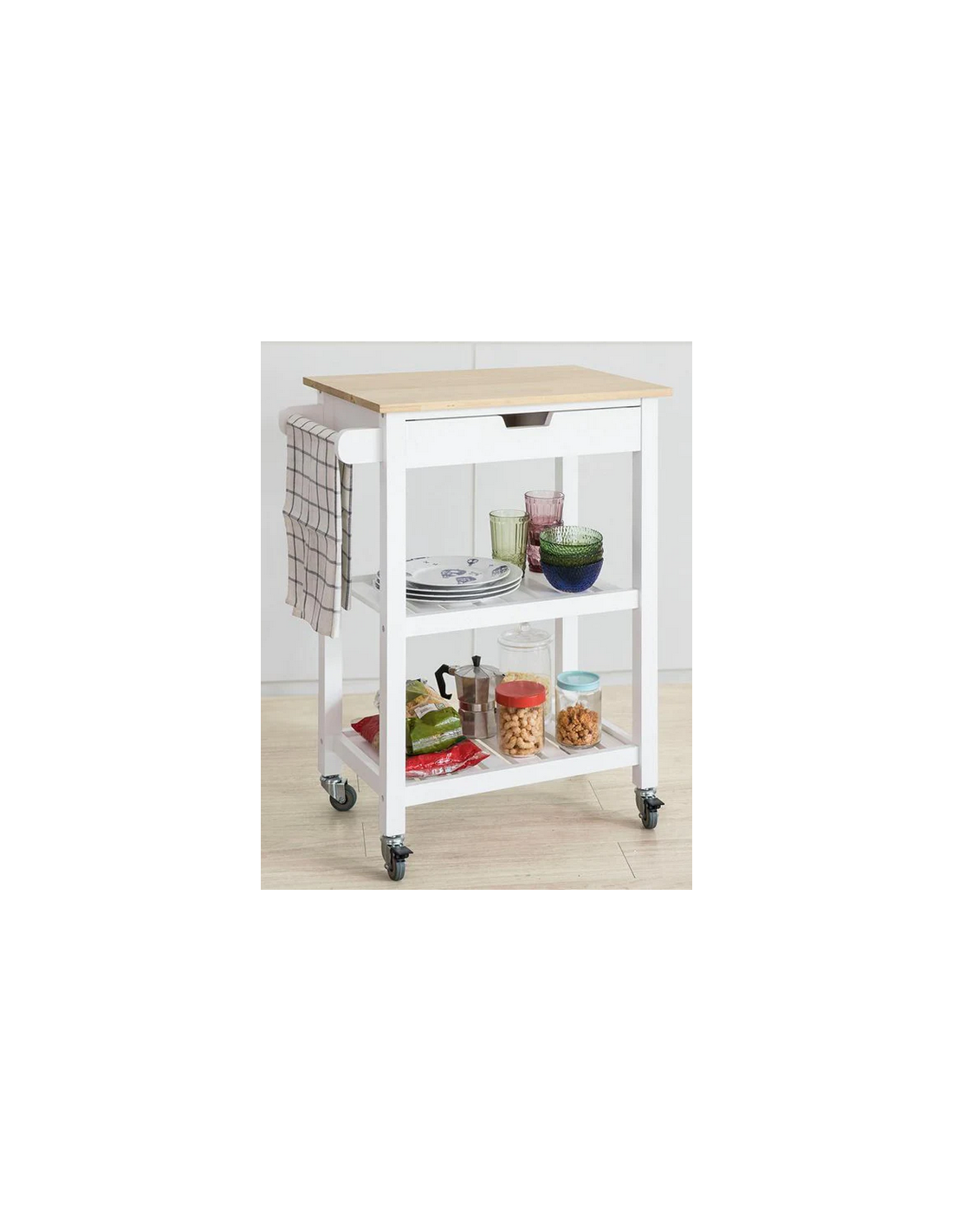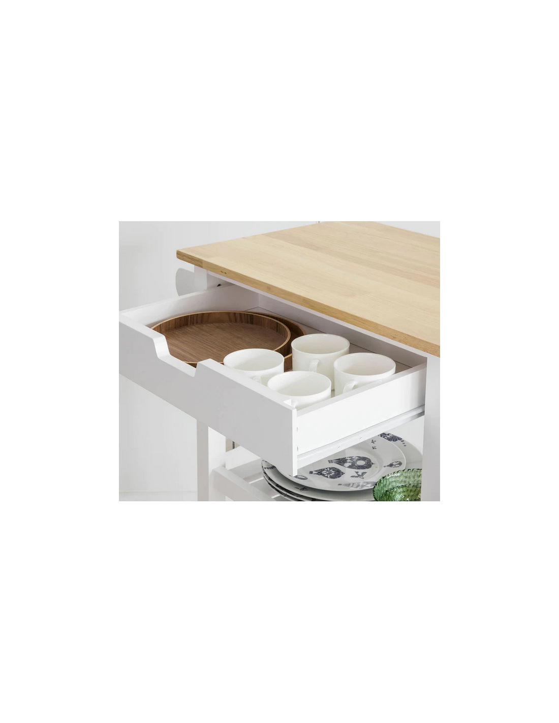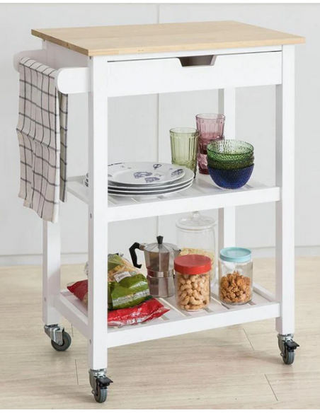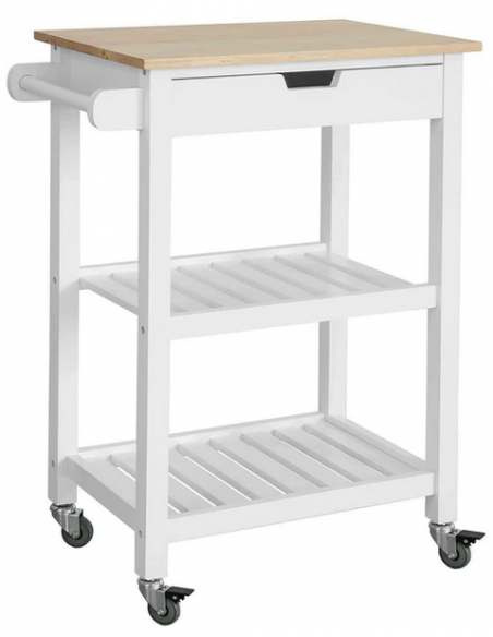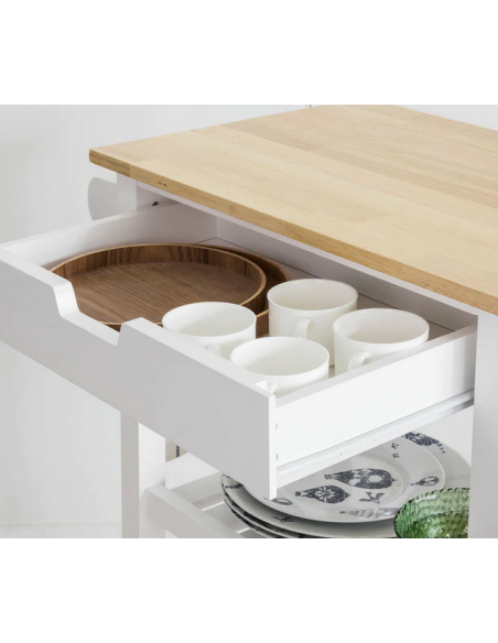 Køkkenskab eller serveringsvogn i fyrretræ og finer 65 x 39 cm - Hvid/Natur