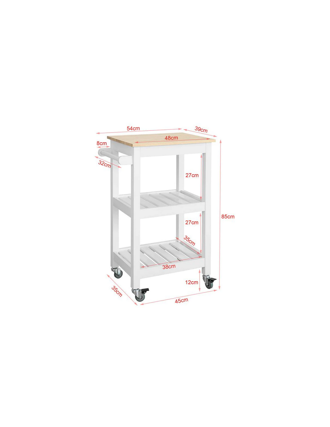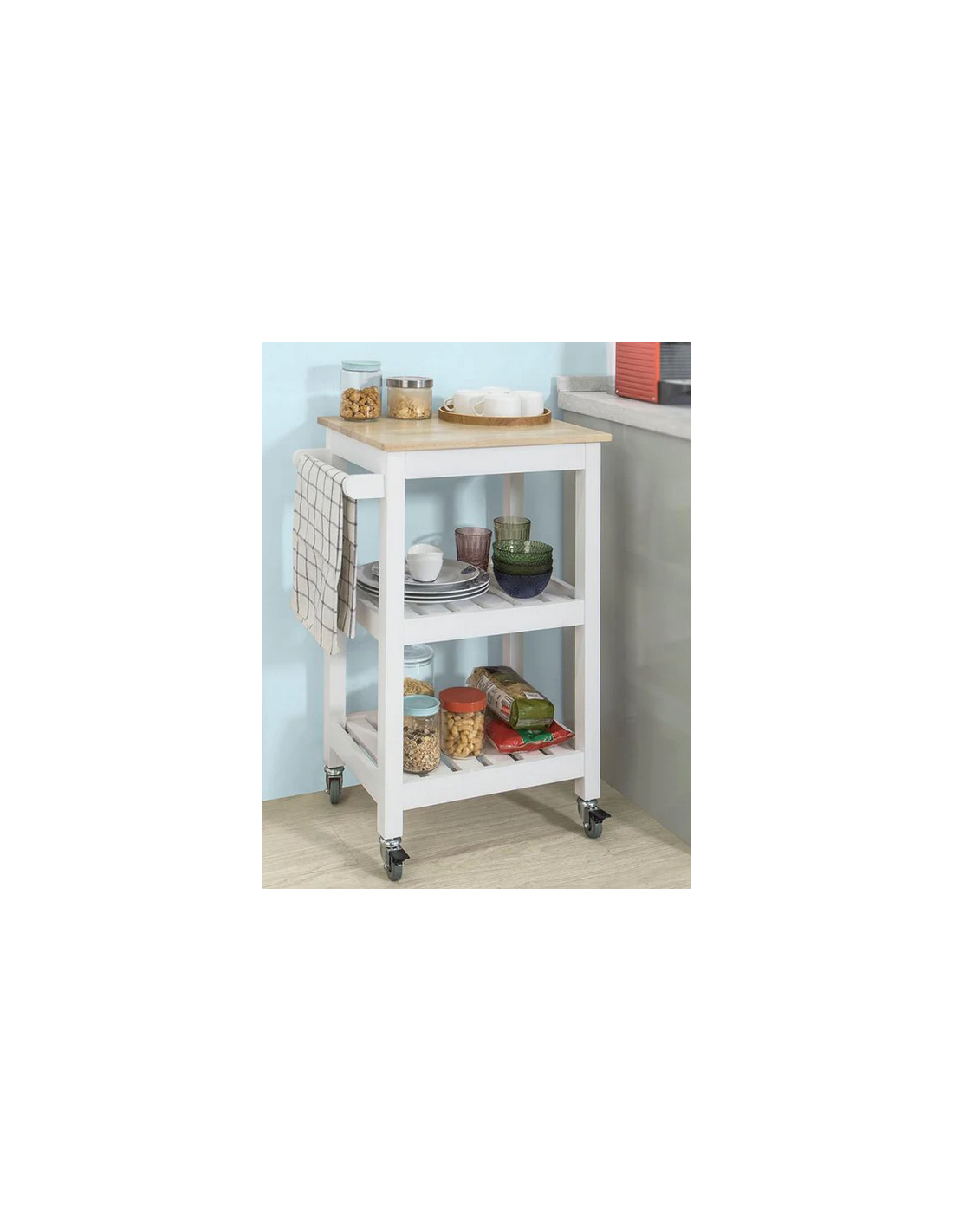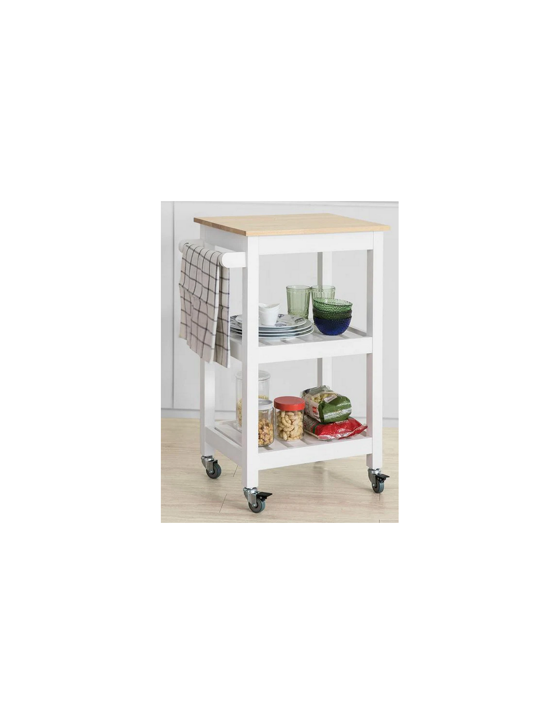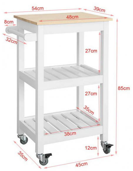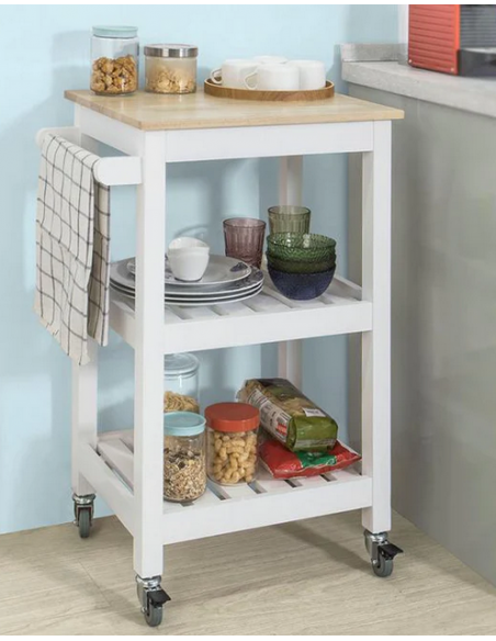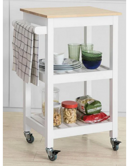 Køkkenskab eller serveringsvogn i fyrretræ og finer 54 x 39 cm - Hvid/Natur