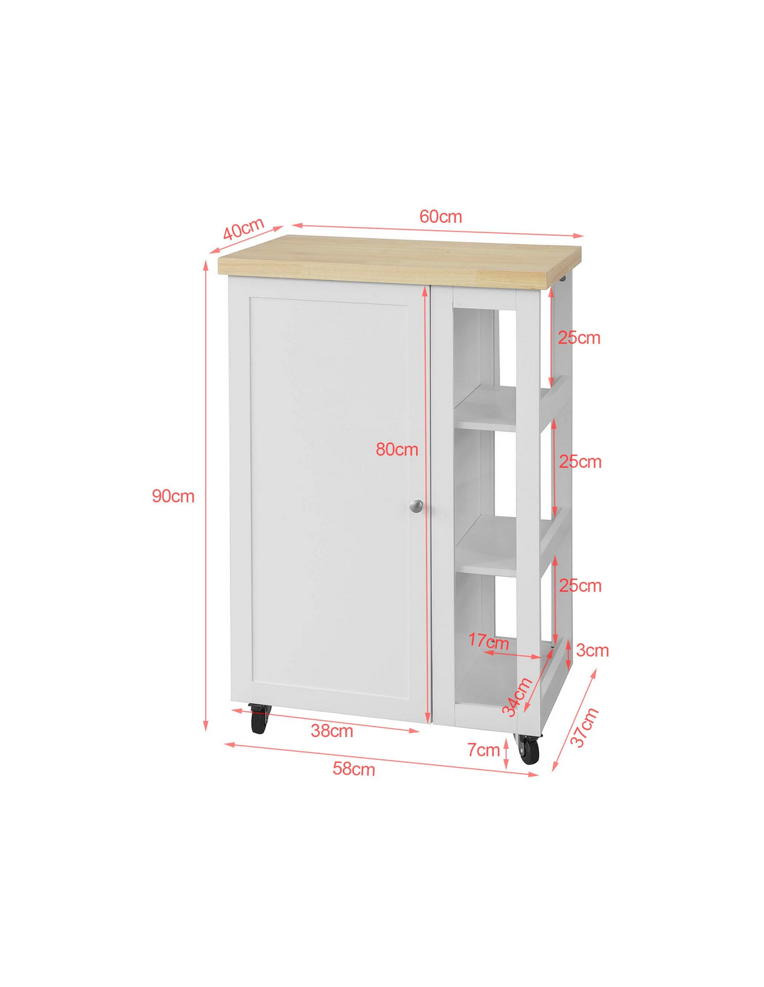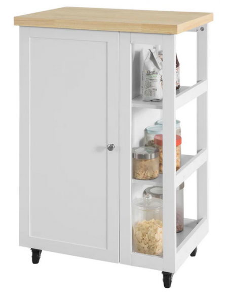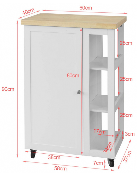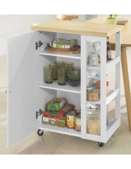 Køkkenskab eller serveringsvogn i møbelplade og finer 60 x 40 cm - Hvid/Natur