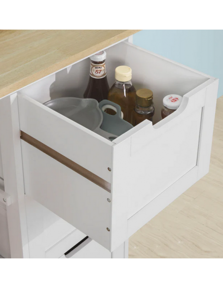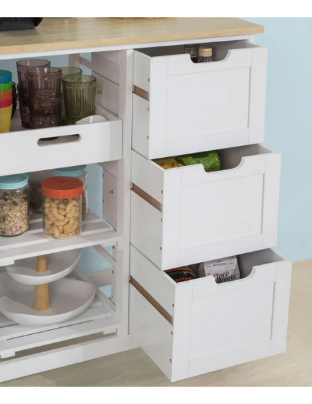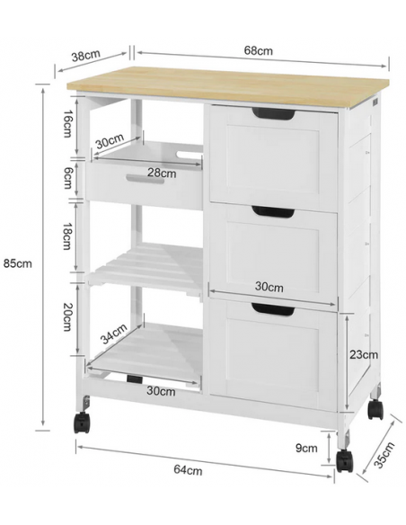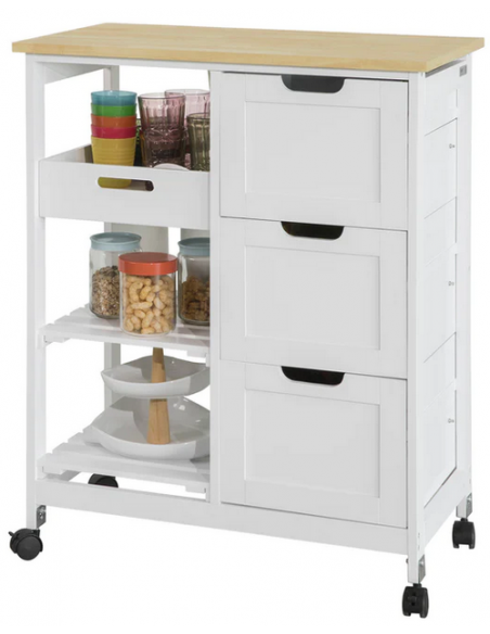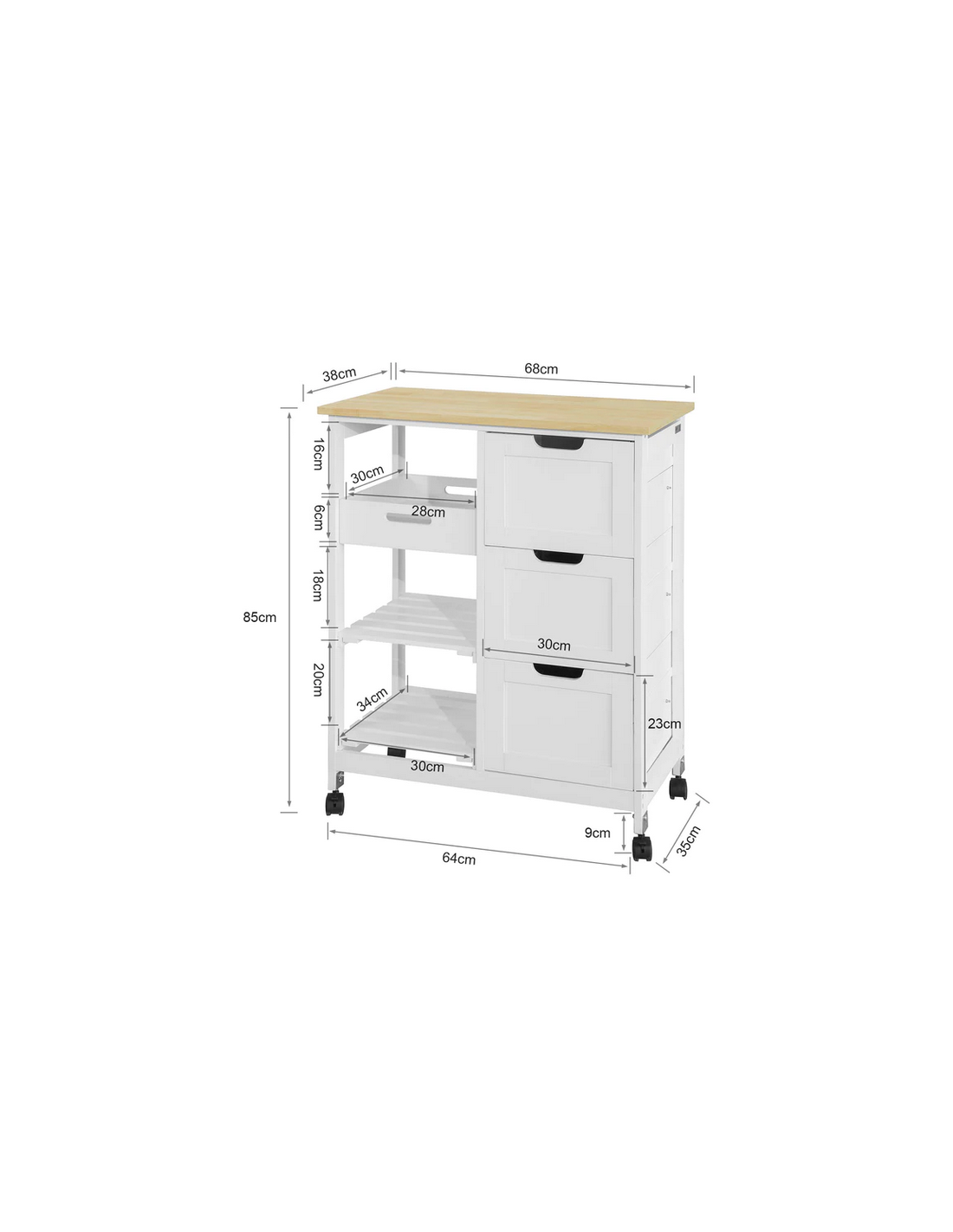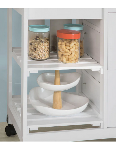 Køkkenskab eller serveringsvogn i fyrretræ og finer 68 x 38 cm - Hvid/Natur