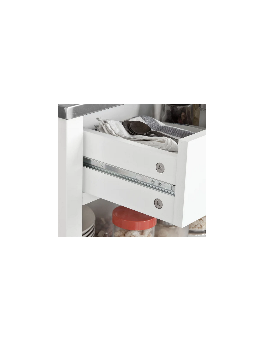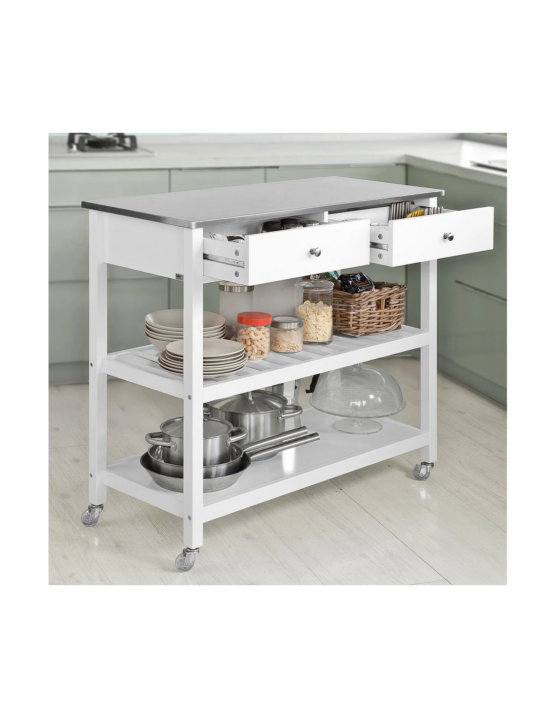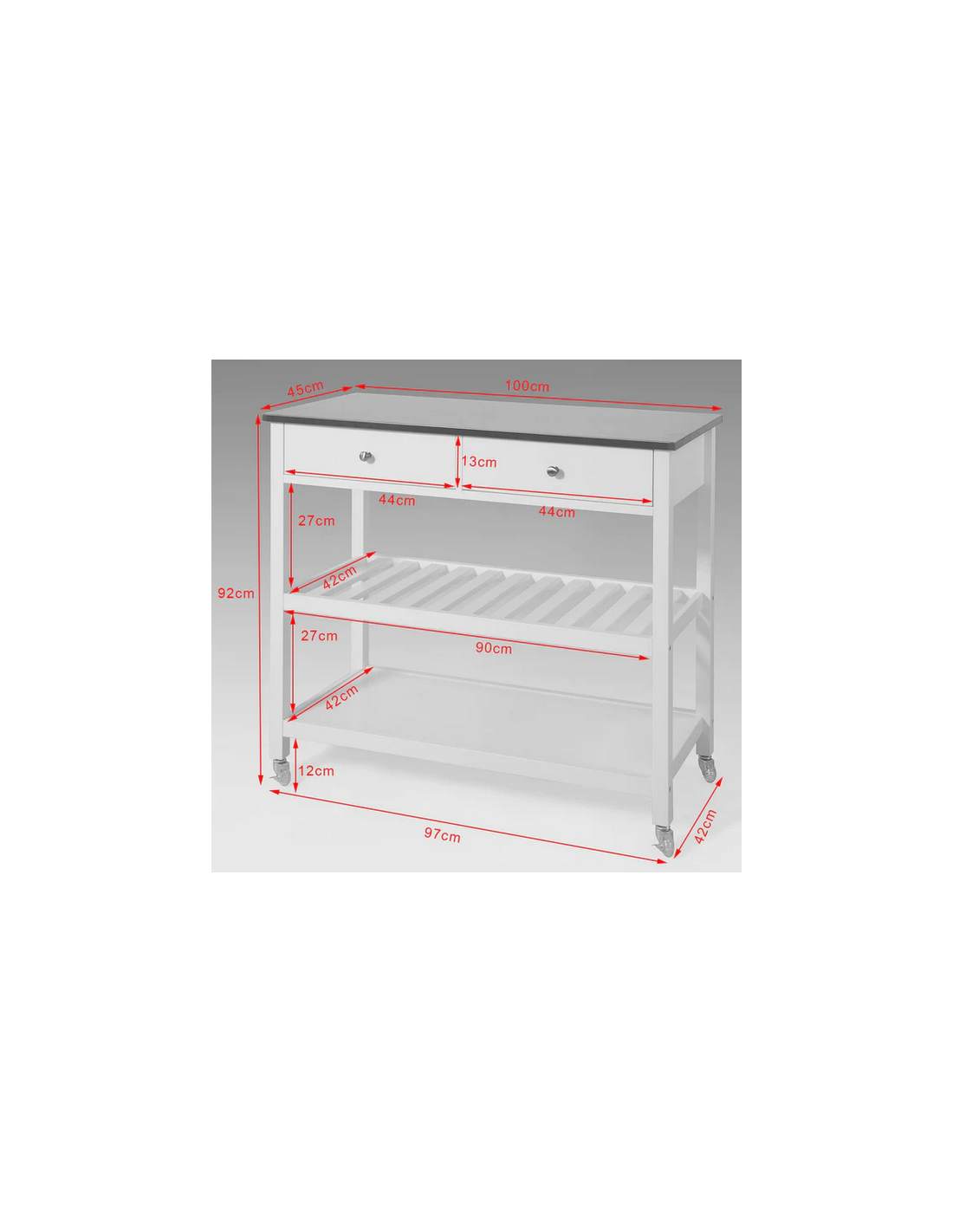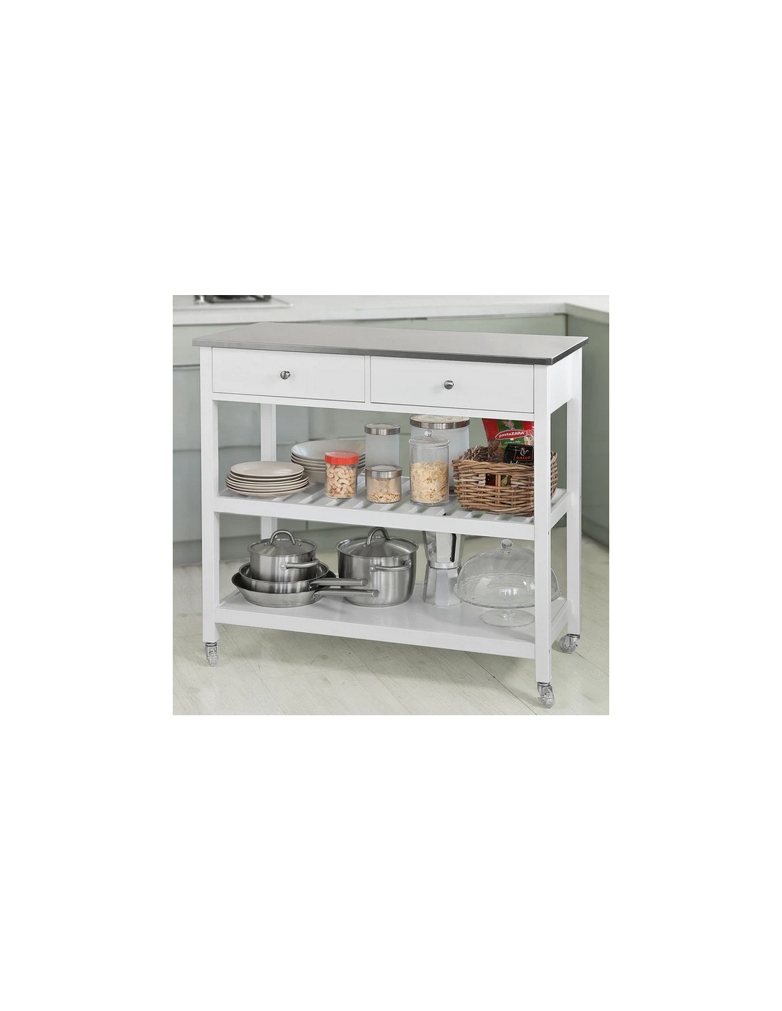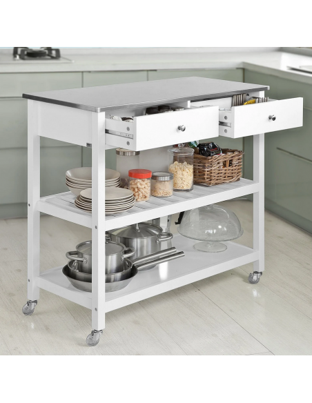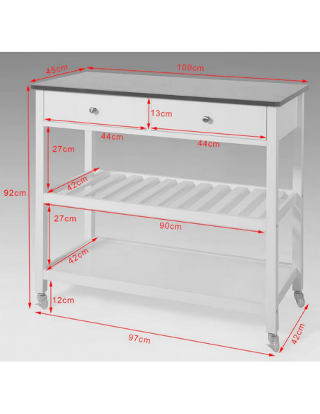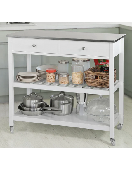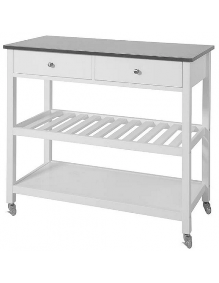 Køkkenskab eller serveringsvogn i mdf og metal 100 x 45 cm - Hvid/Stålgrå