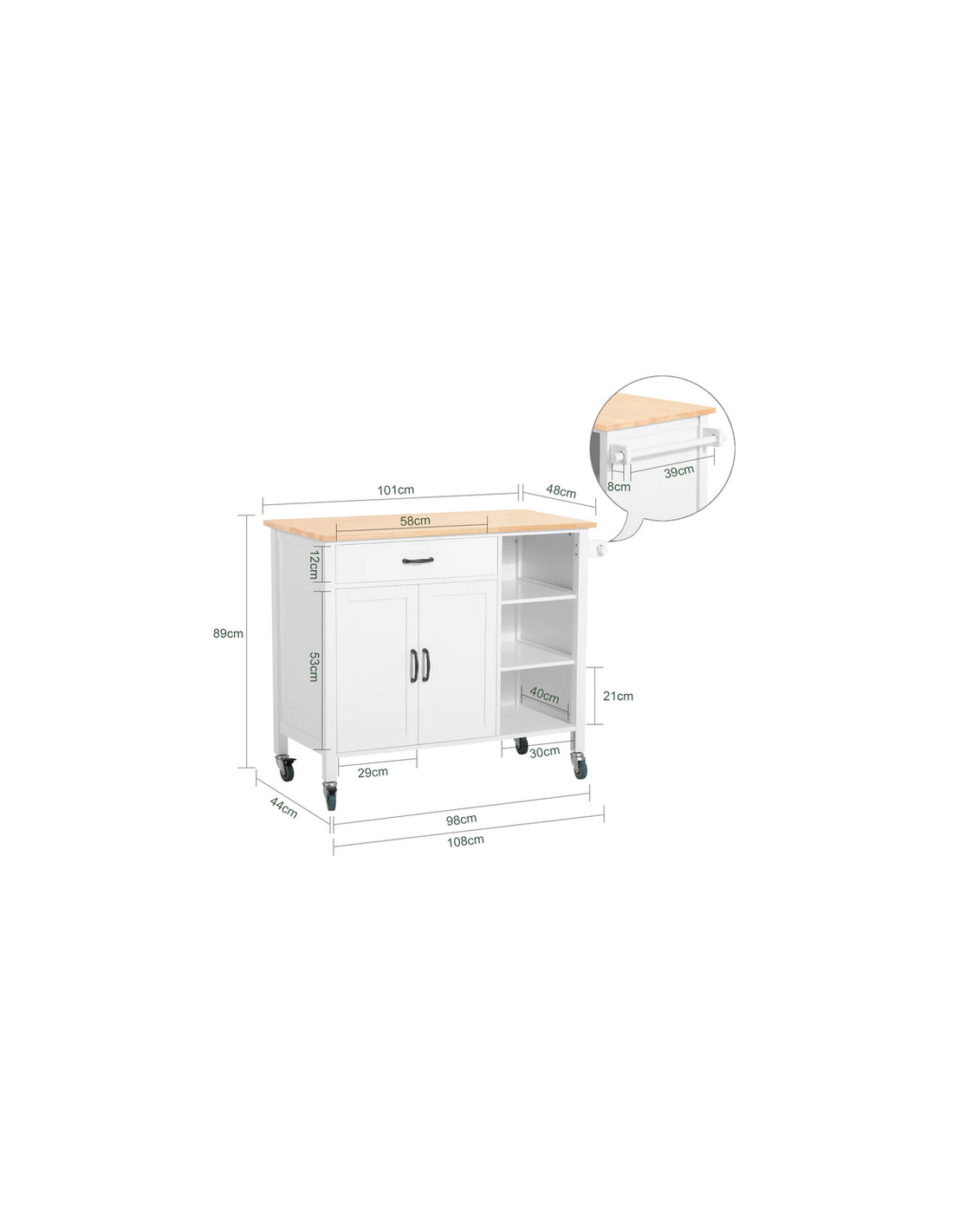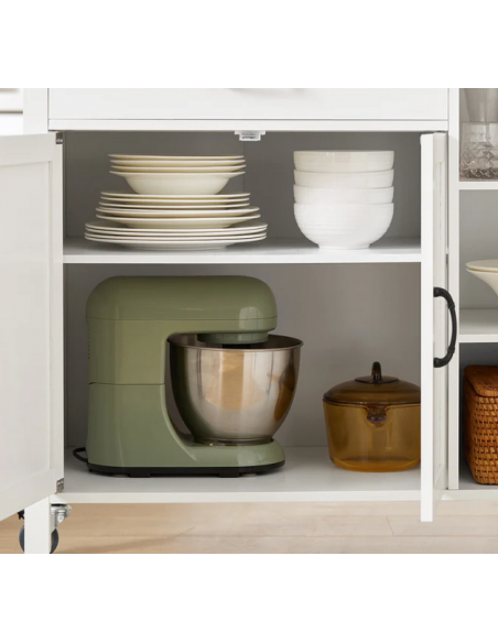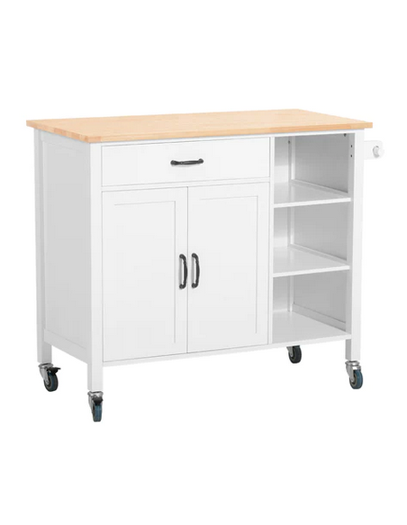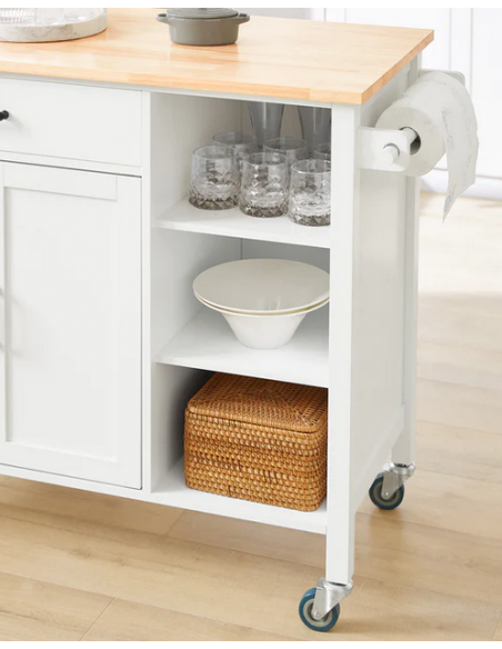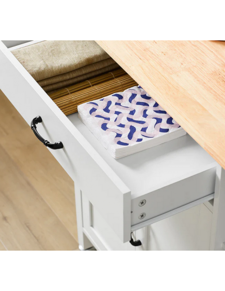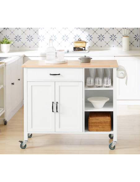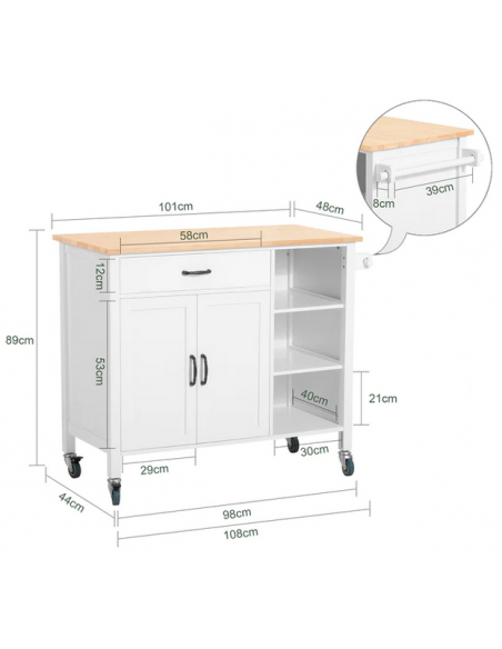 Køkkenskab eller serveringsvogn i mdf og fyrretræ 108 x 48 cm - Hvid/Natur