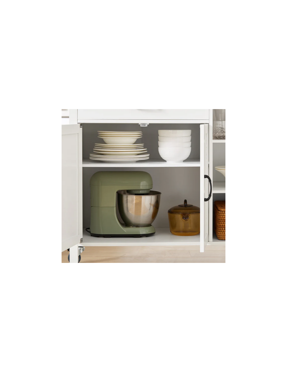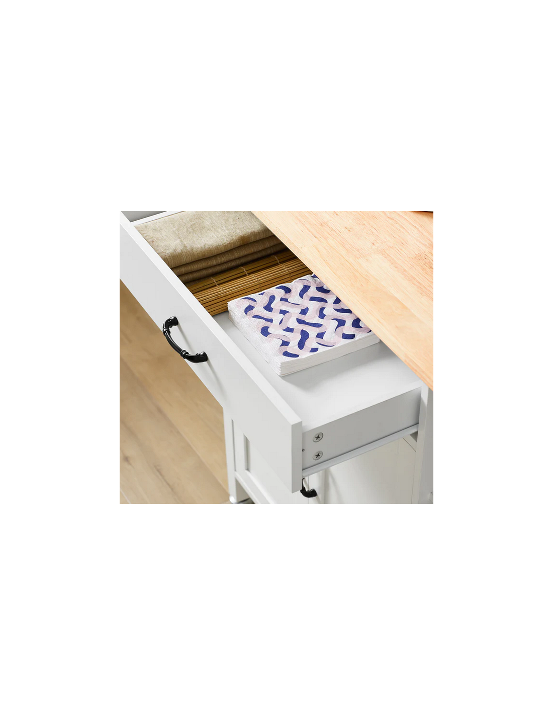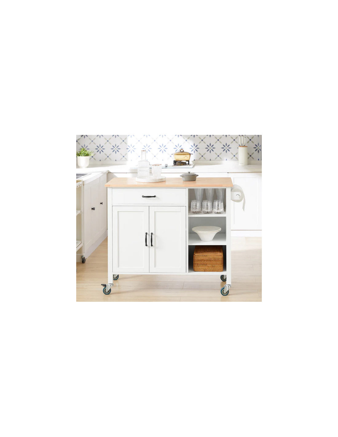 Køkkenskab eller serveringsvogn i mdf og fyrretræ 108 x 48 cm - Hvid/Natur
