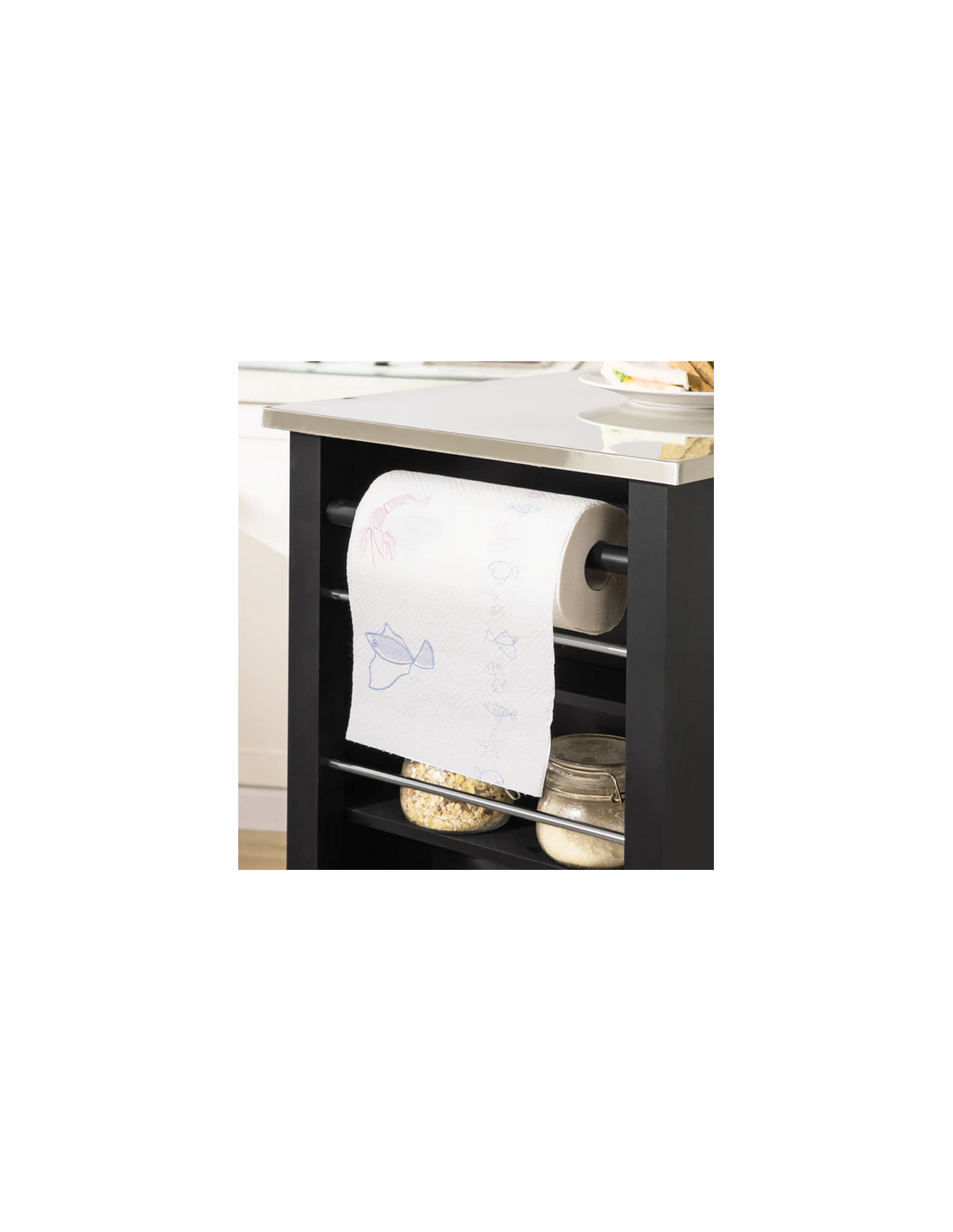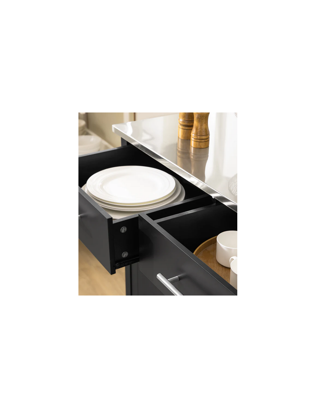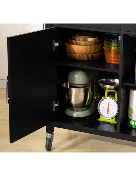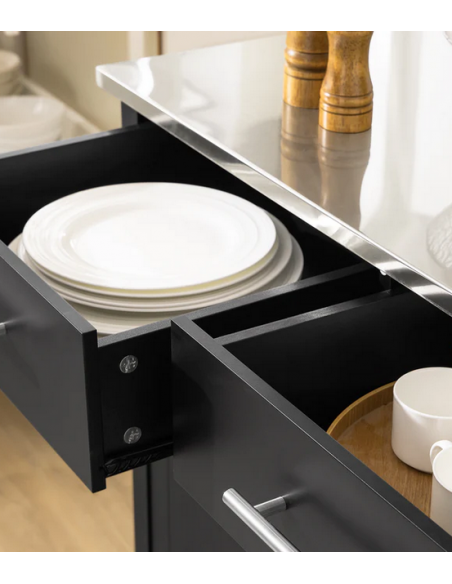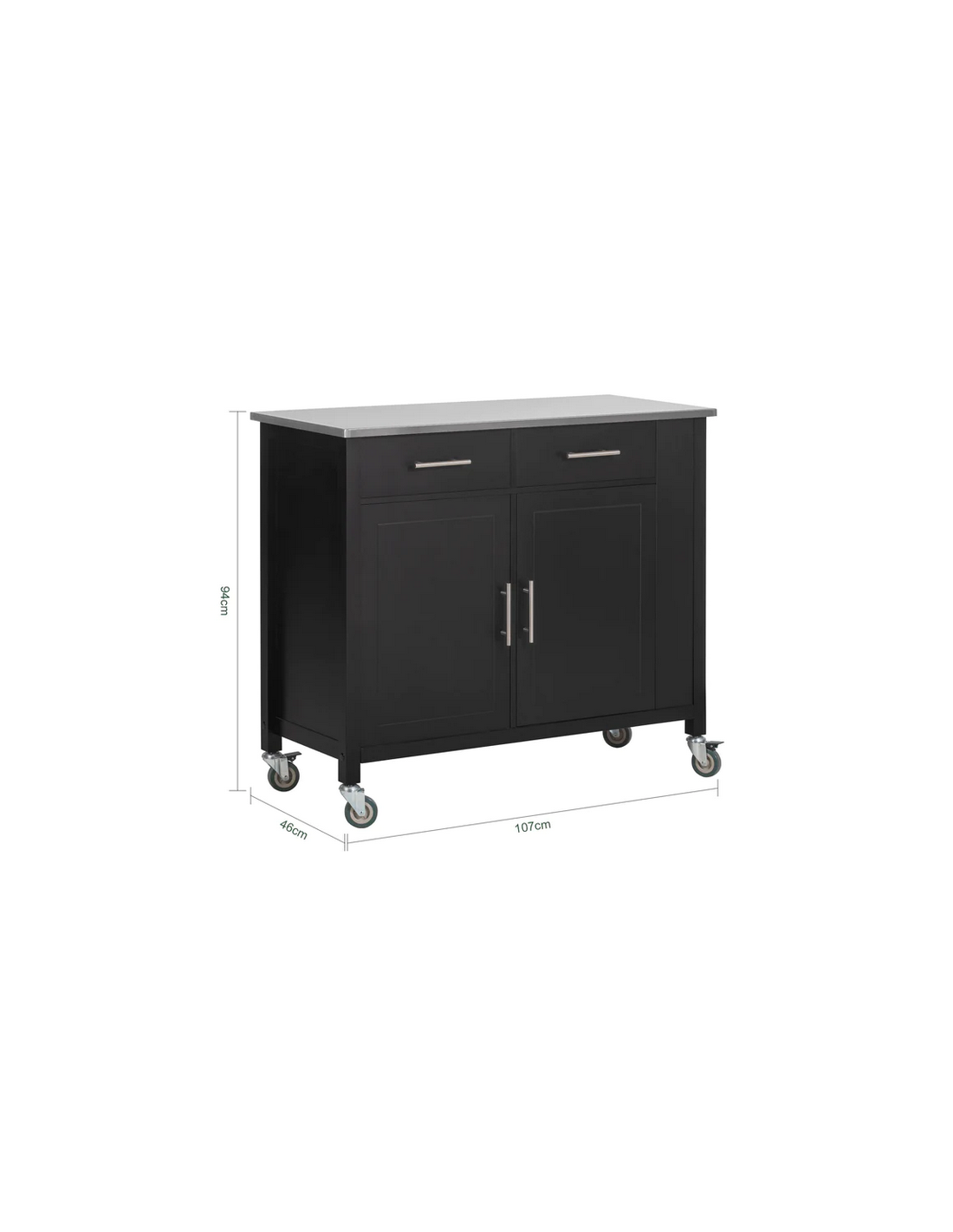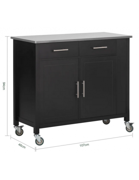 Køkkenskab eller serveringsvogn i mdf og metal 107 x 46 cm - Sort/Stålgrå