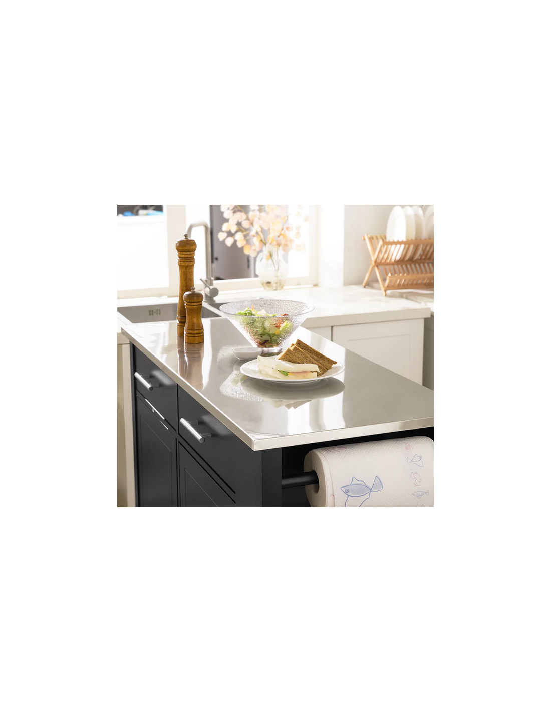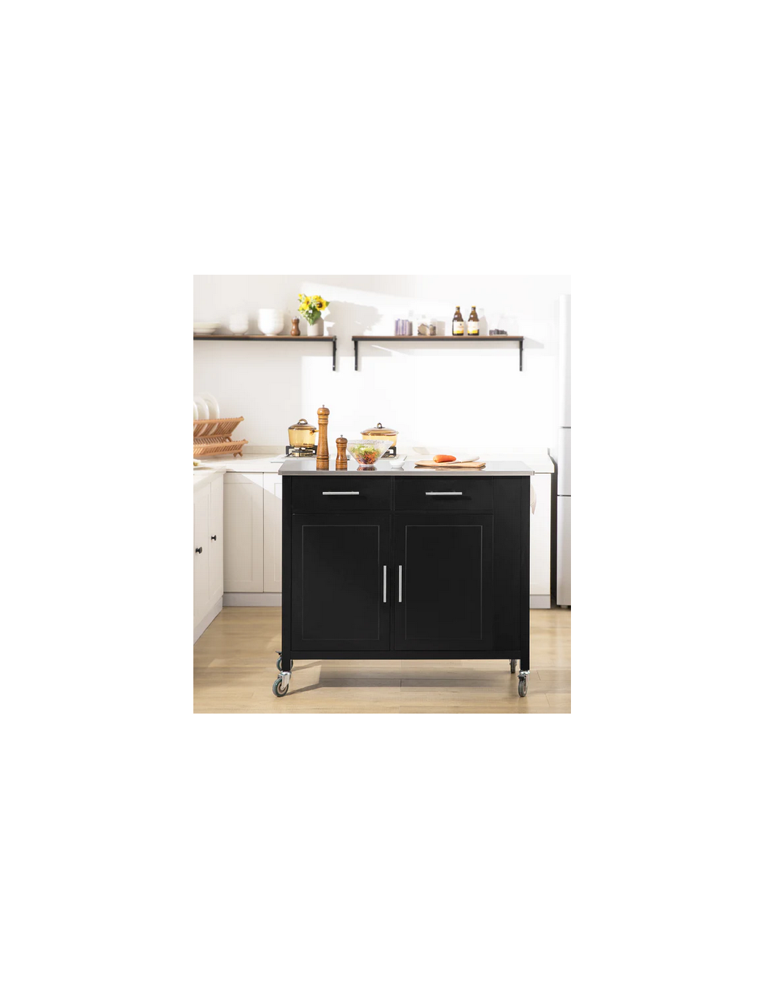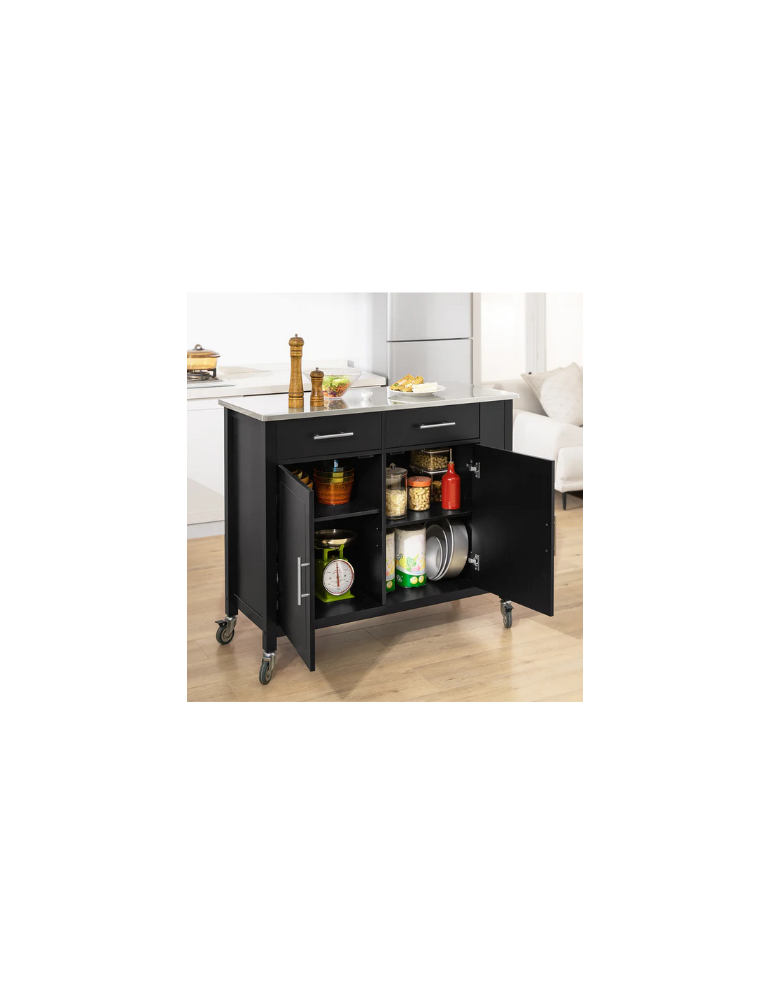 Køkkenskab eller serveringsvogn i mdf og metal 107 x 46 cm - Sort/Stålgrå