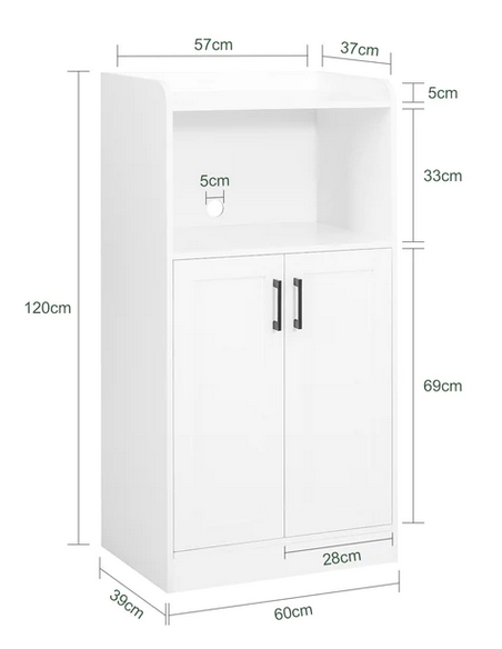 Køkkenskab udført i et design af mdf. Skabet måler 120 cm i højden og 60 x 39 cm i bredde og dybde.