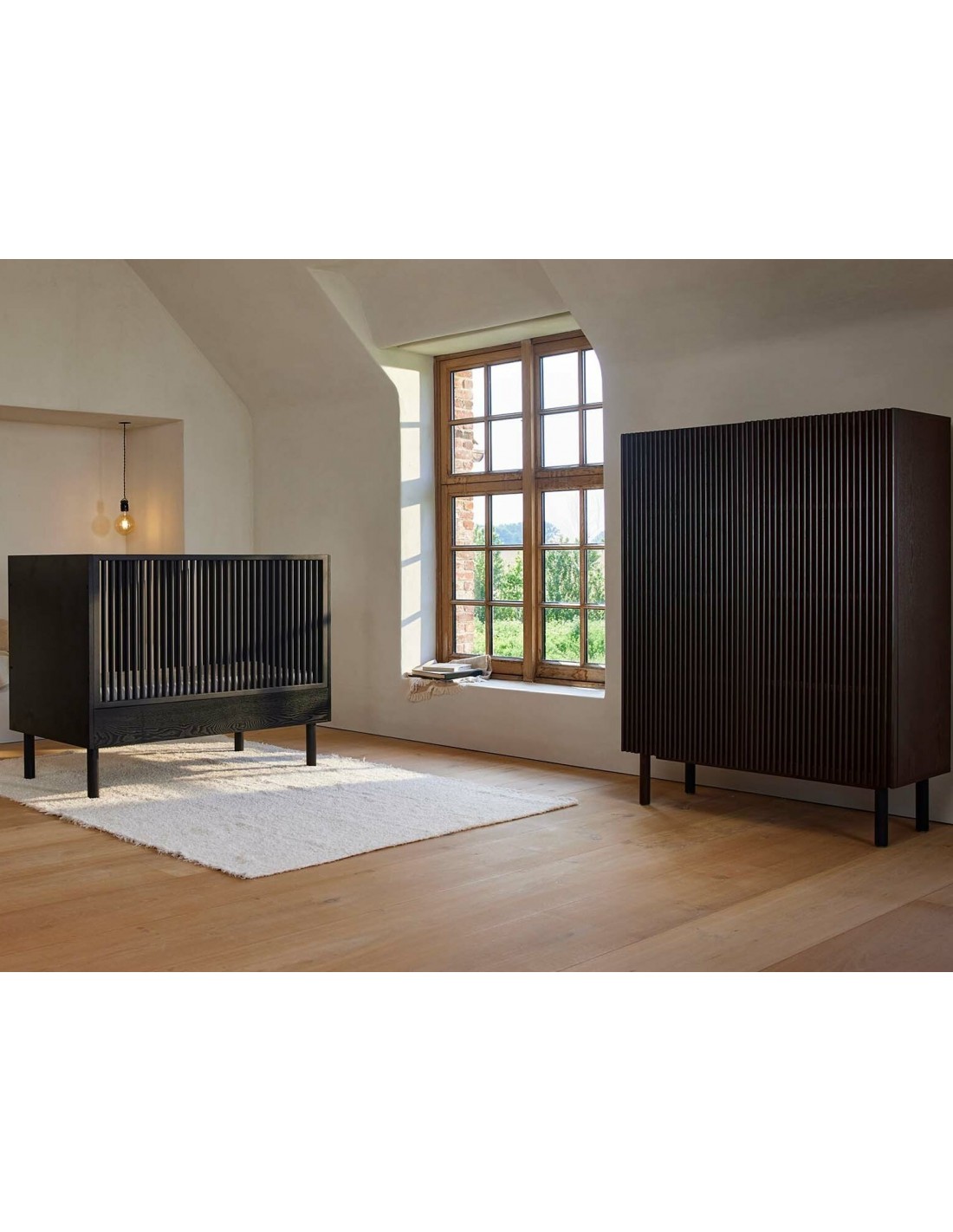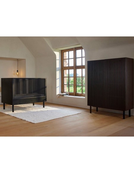 HAI NO KI Kombiseng fra Belgiske Quax, udført i et moderne design og fremstillet i lækre materialer. Sengen måler 124 x 66 cm og passer til madrasser med målene 120 x 60 cm. Den ene side kan afmonteres, hvorved sengen kan omdannes til en bænk.