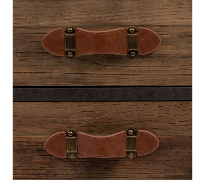 Kommode i genanvendt egetræ og pellini læder H95 cm - Rustik natur/Kaffe