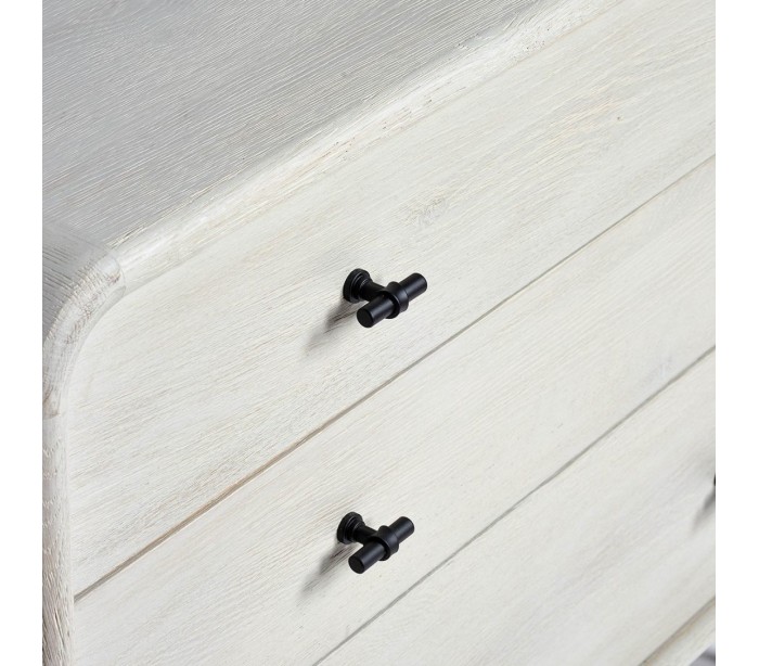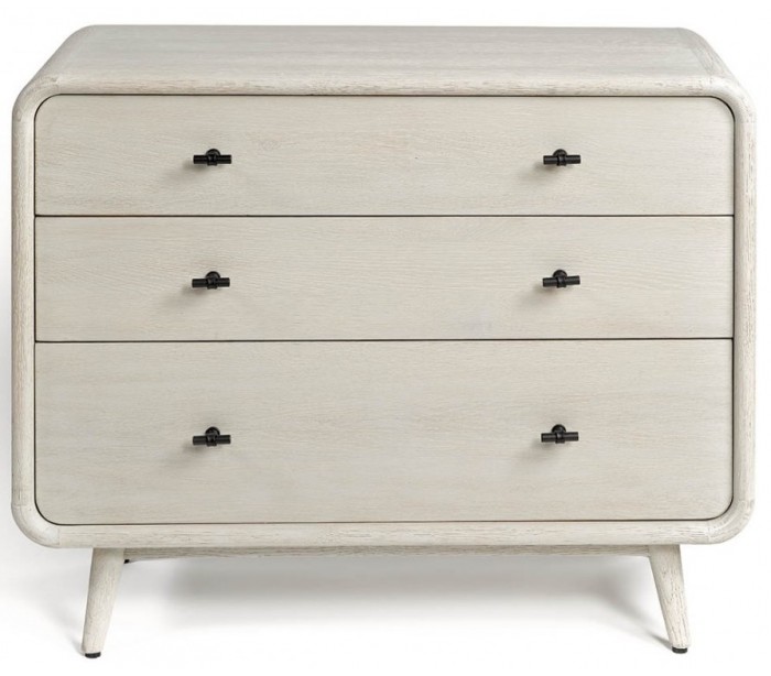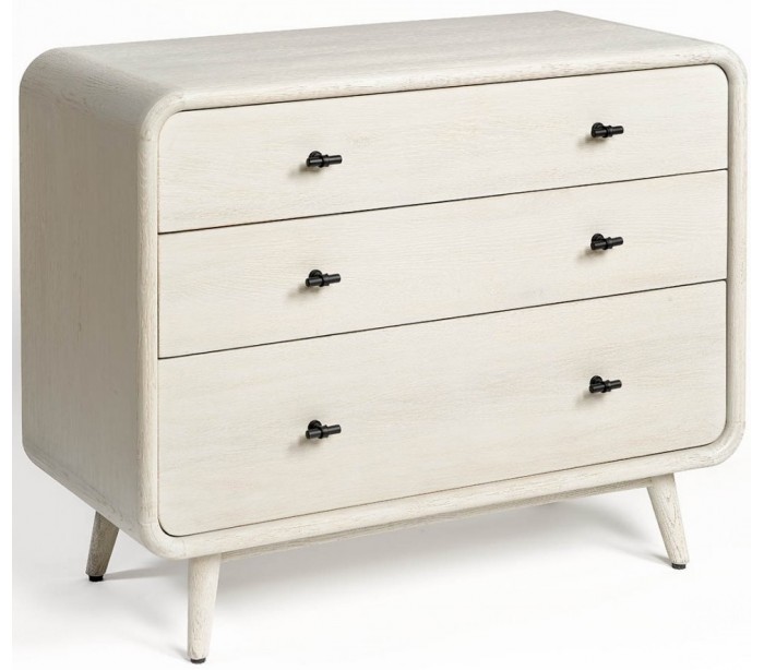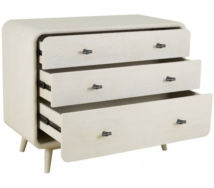 Kommode udført i et rustikt design i antik gråhvid bejset egetræ og sortlakeret metal. Kommoden er med 3 skuffer og måler 80 cm i højden og 100 cm i bredden.