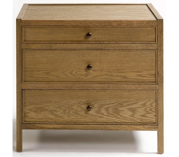 Kommode udført i et rustikt design i børstet egetræ og antik guldfarvet metal. Kommoden er med 3 skuffer og måler 60 cm i højden og 65 cm i bredden.