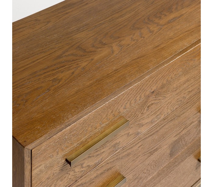 Kommode i metal og egetræ B100 cm - Antik guld/Antik brunbejset