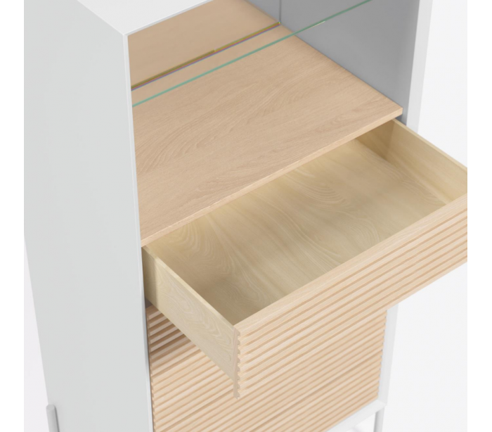 Marielle kommode i mdf og askfinér H142 cm - Hvid/Natur