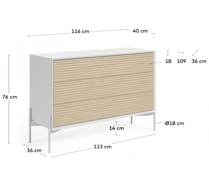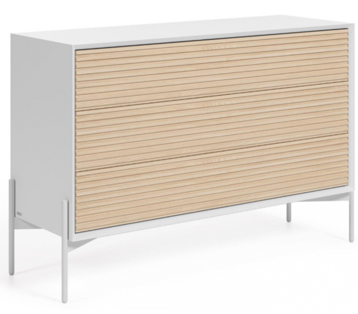 Kommode med 3 skuffer, udført i et skandinavisk design fra LaForma. Kommoden er fremstillet i mdf og askfinér og måler 116 cm i bredden og 76 cm i højden.