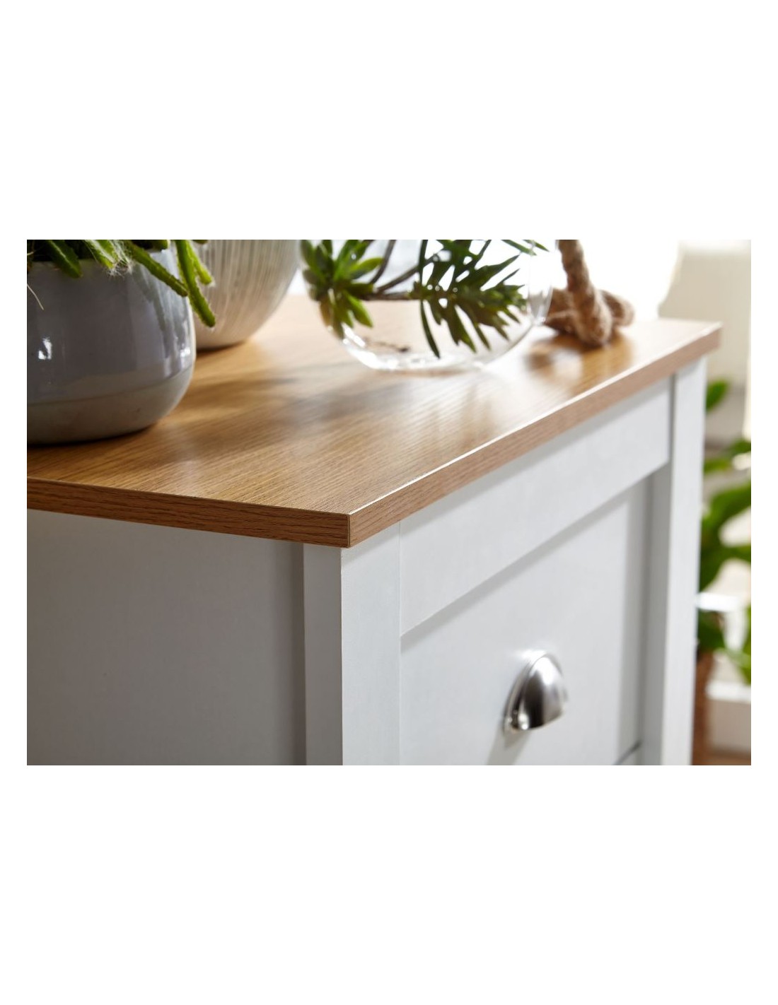 Kommode i møbelplade H114 x B53 cm - Hvid/Natur