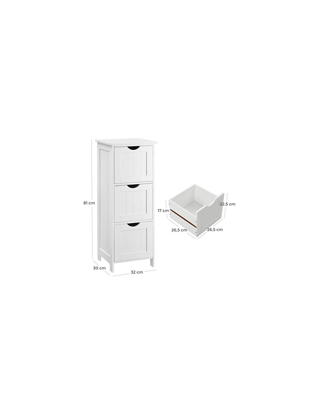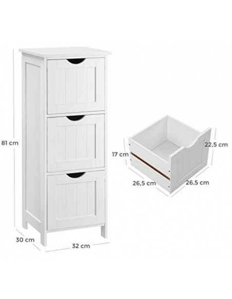 Kommode i mdf H81 x B32 x D30 cm - Hvid