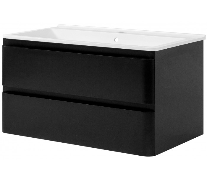 Miami komplet badmiljø med underskab og håndvask, udført i et design af mat sort og hvid støbemarmor. Badmiljøet måler 70,5 cm i bredden, 50 cm i højden og 47,5 cm i dybden. Leveres med integreret greb med afrundede kanter samt 2 skuffer med softclose. Justérbare ophængsbeslag medfølger.