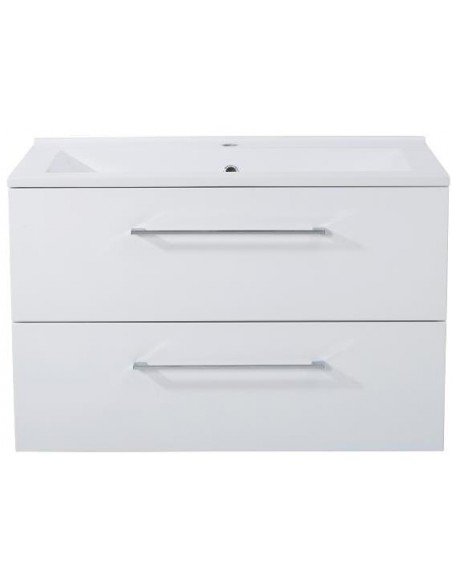 Bakkedahl komplet badmiljø med underskab og håndvask, udført i et design af hvid højglans og hvid støbemarmor. Badmiljøet måler 80 cm i bredden, 50 cm i højden og 47,5 cm i dybden. Leveres med kromlakerede greb med kantede hjørner samt 2 skuffer med softclose. Bakkedahl serien leveres færdigsamlet fra fabrikken med justerbare ophængningsbeslag, som gør det nemt, hurtigt og bekvemt at installere i netop dit badeværelse.