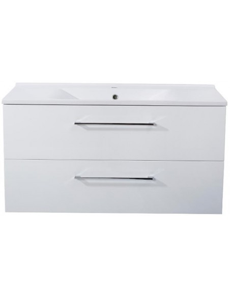 Bakkedahl komplet badmiljø med underskab og håndvask, udført i et design af hvid højglans og hvid støbemarmor. Badmiljøet måler 100 cm i bredden, 50 cm i højden og 47,5 cm i dybden. Leveres med kromlakerede greb med kantede hjørner samt 2 skuffer med softclose. Bakkedahl serien leveres færdigsamlet fra fabrikken med justerbare ophængningsbeslag, som gør det nemt, hurtigt og bekvemt at installere i netop dit badeværelse.