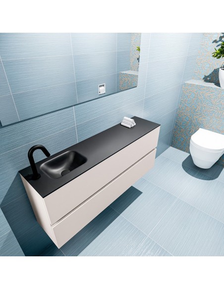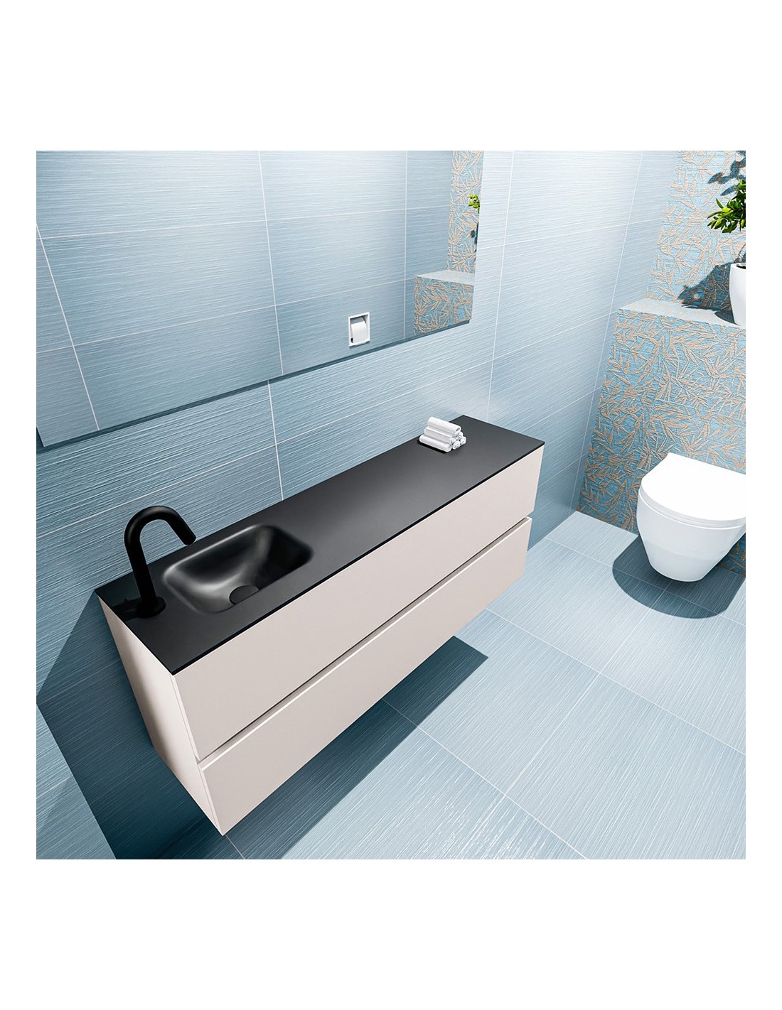 ADA Komplet badmiljø venstrevendt håndvask B120 x H50 cm MDF - Linned/Sort