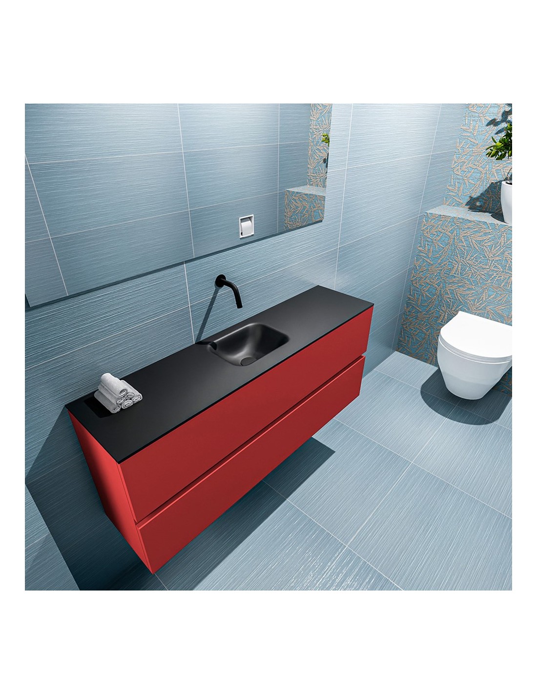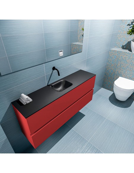 ADA Komplet badmiljø centreret håndvask B120 x H50 cm MDF - Rød/Sort
