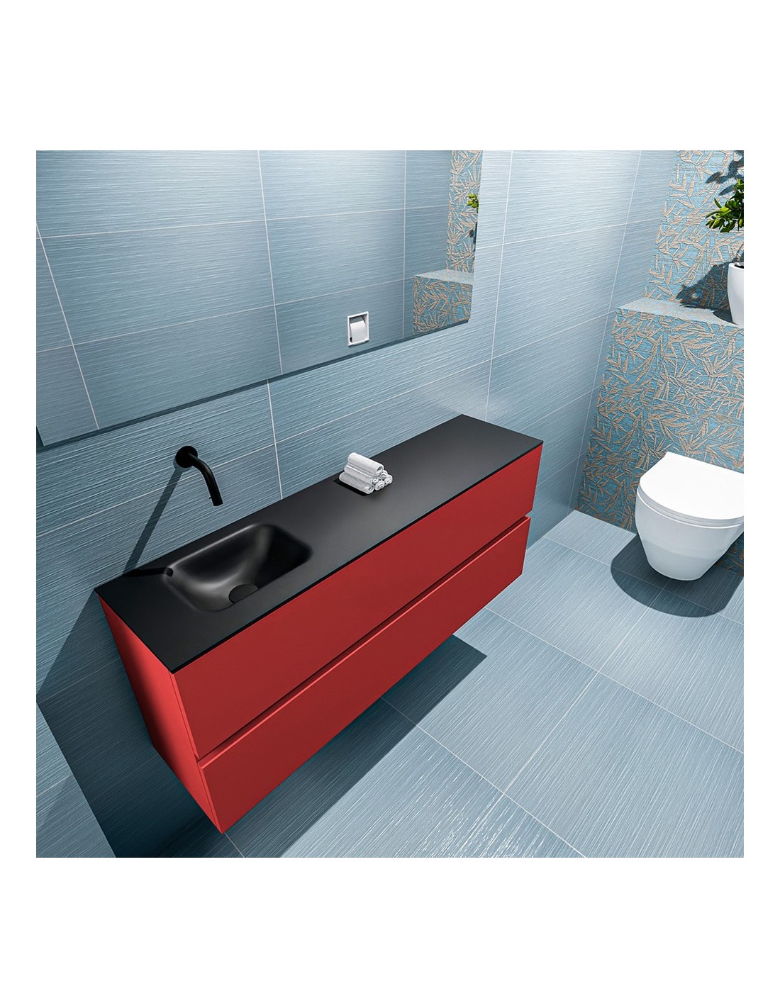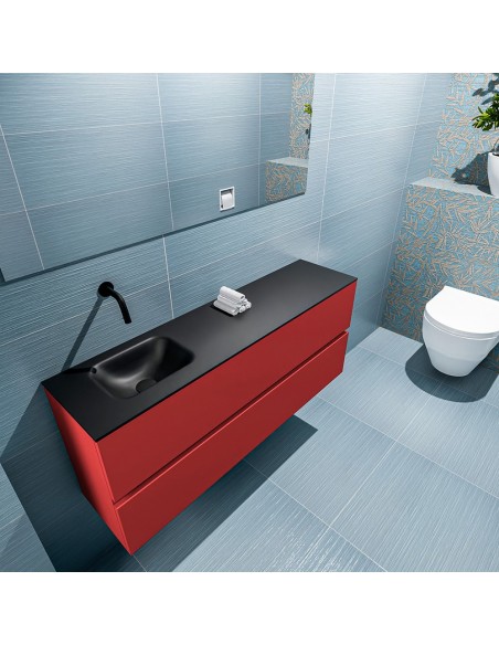 ADA Komplet badmiljø venstrevendt håndvask B120 x H50 cm MDF - Rød/Sort