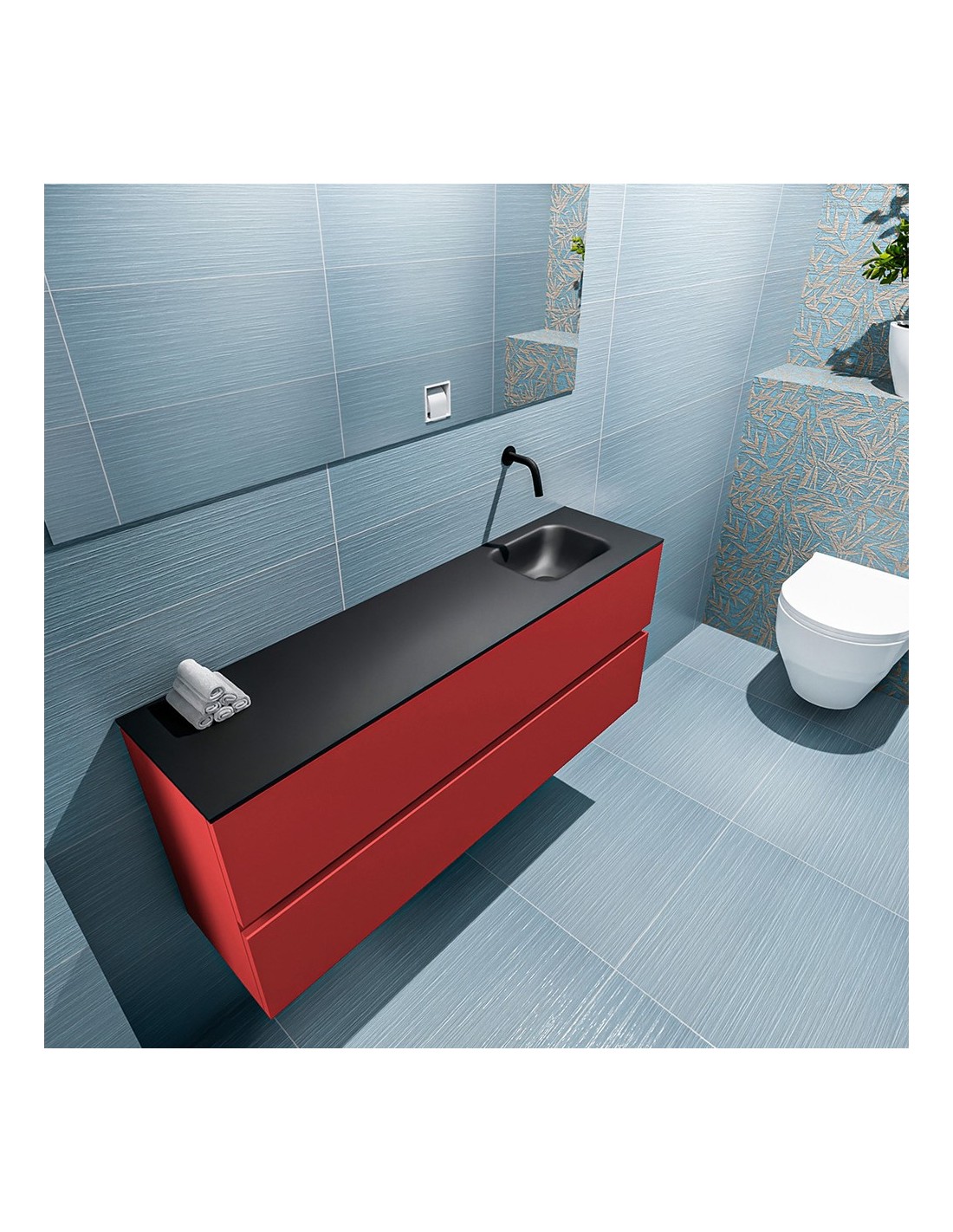 ADA Komplet badmiljø højrevendt håndvask B120 x H50 cm MDF - Rød/Sort