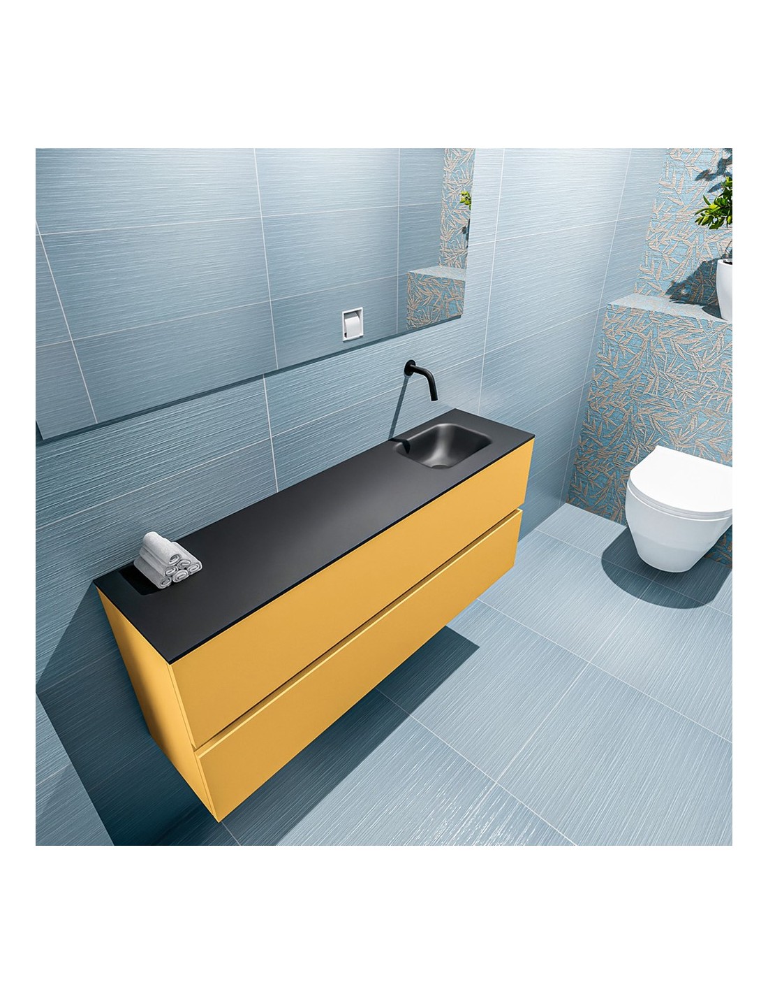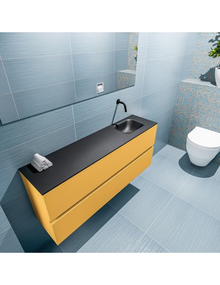 ADA Komplet badmiljø højrevendt håndvask B120 x H50 cm MDF - Okker/Sort