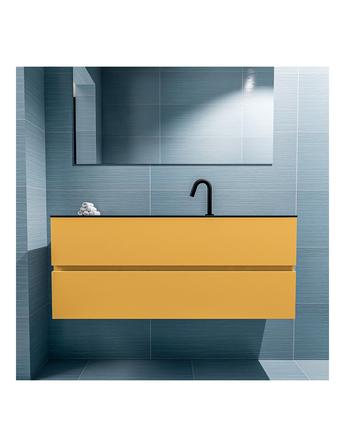 ADA Komplet badmiljø centreret håndvask B120 x H50 cm MDF - Okker/Sort