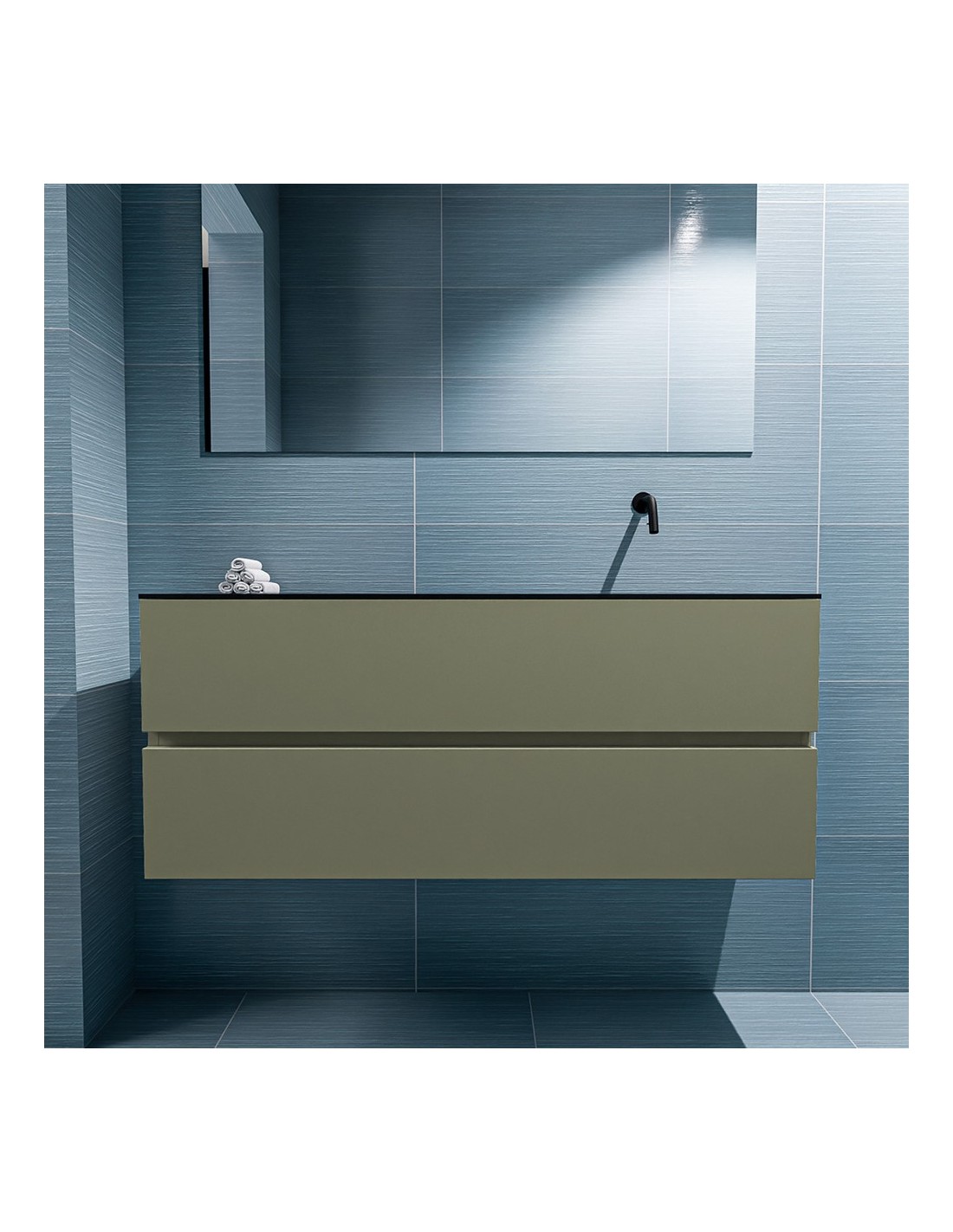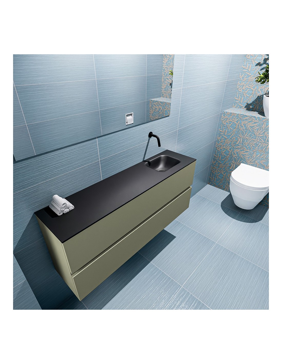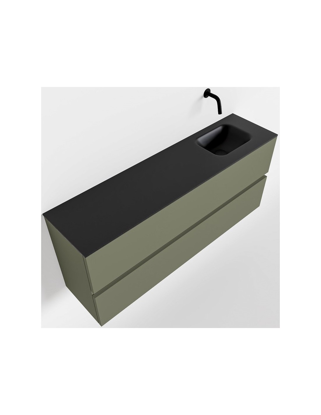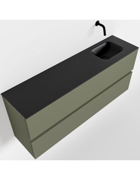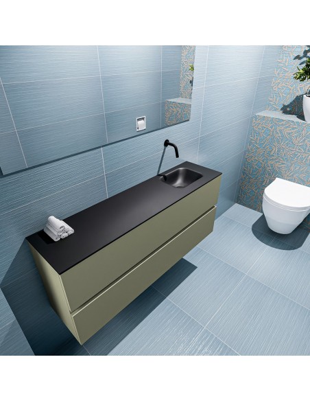 ADA Komplet badmiljø højrevendt håndvask B120 x H50 cm MDF - Armygrøn/Sort