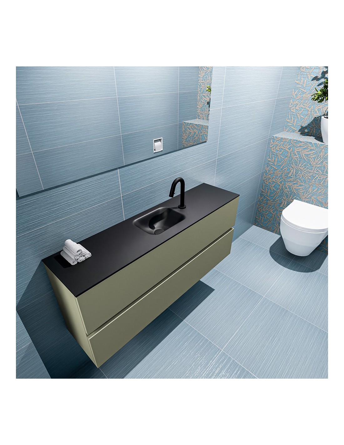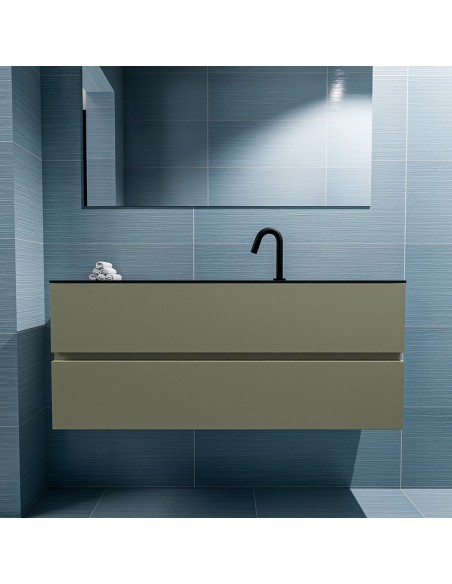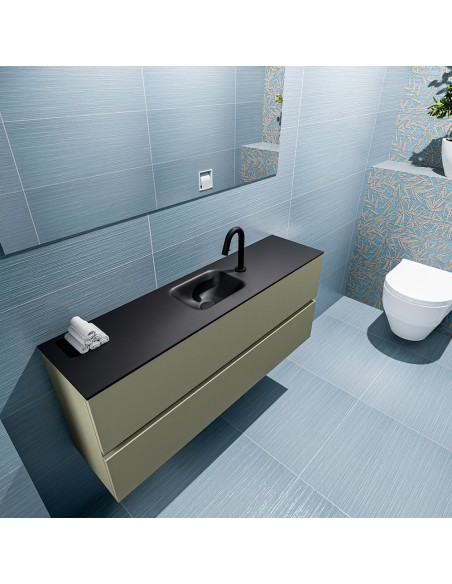 ADA Komplet badmiljø centreret håndvask B120 x H50 cm MDF - Armygrøn/Sort